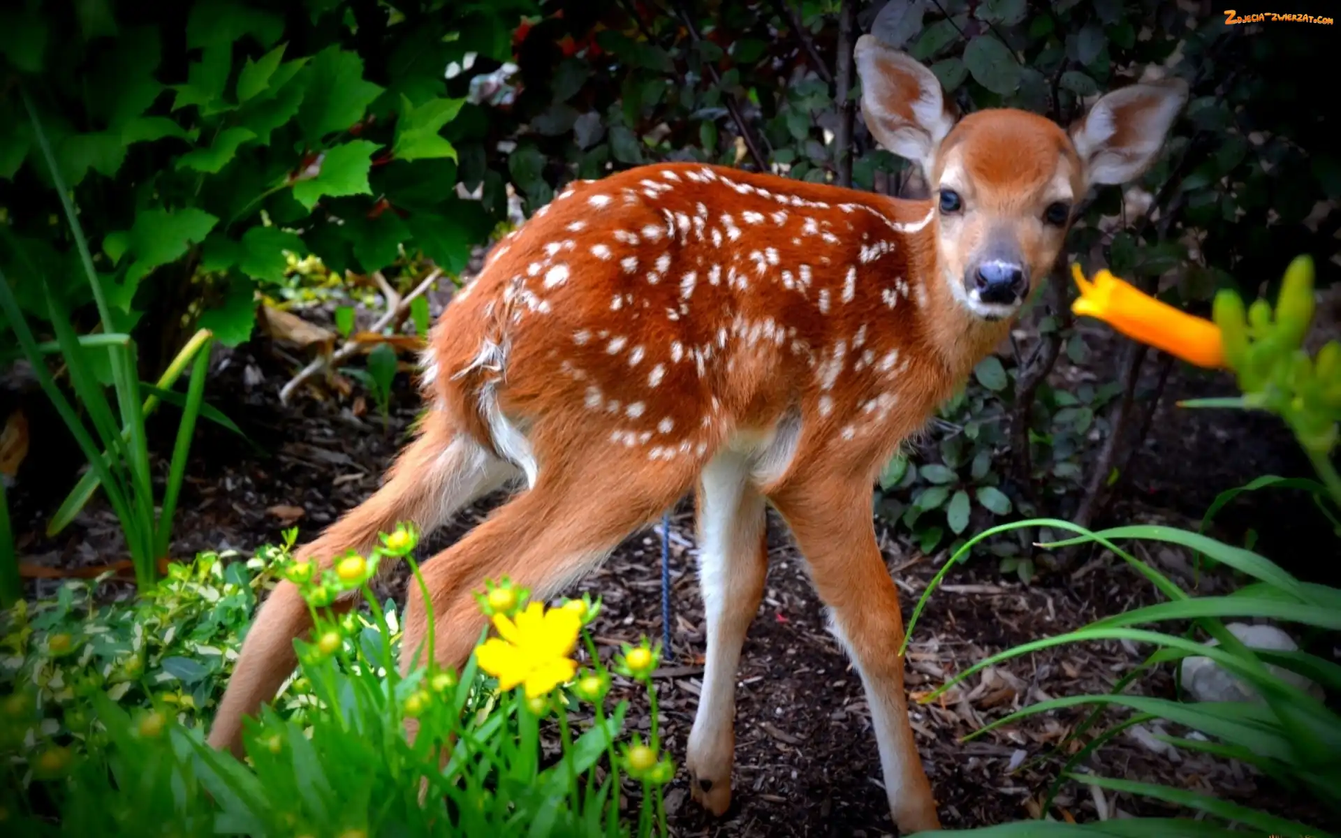Zdjęcie: Sarna, Kwiaty, Młoda, Żółte