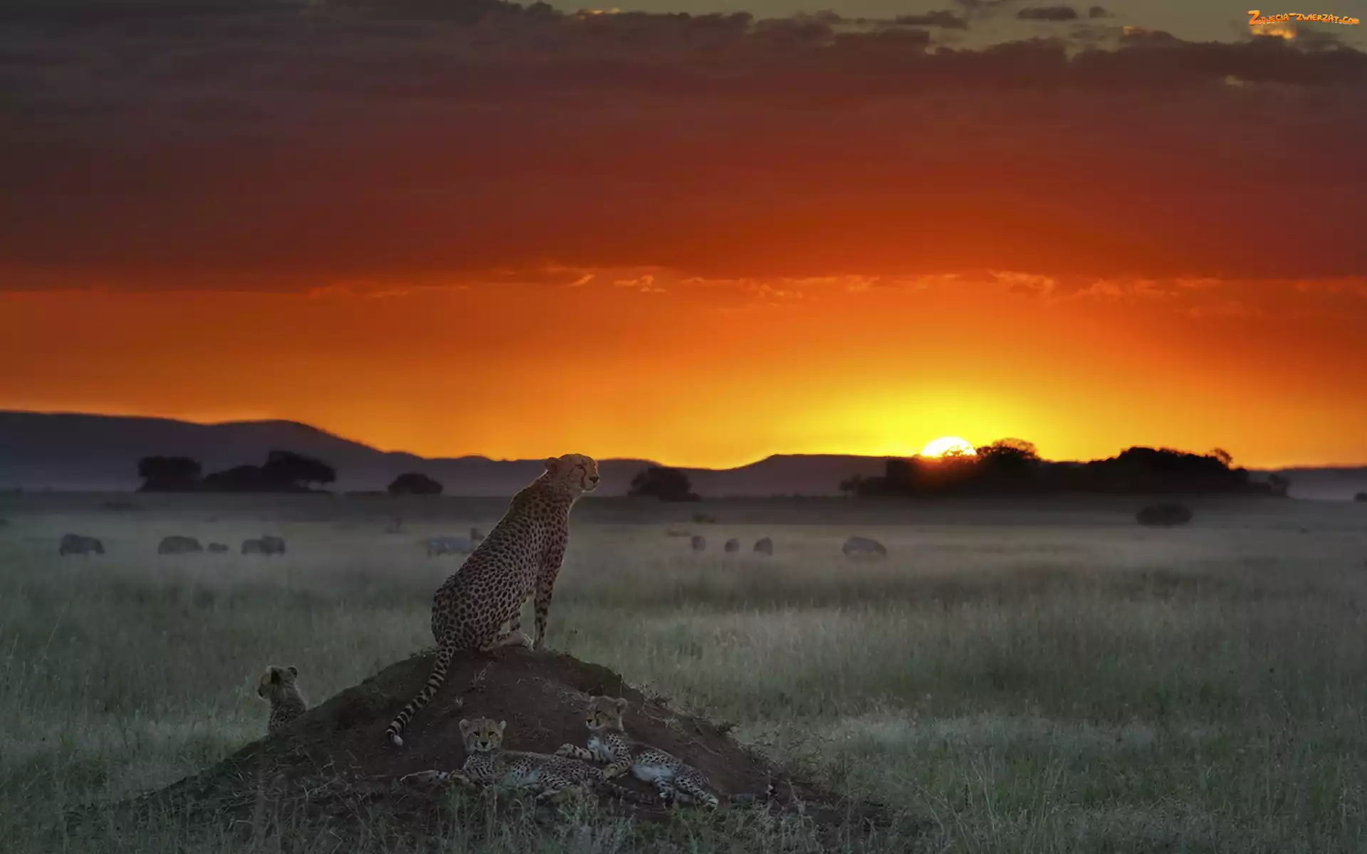 Zdjęcie: Sawanna, Słońca, Gepardy, Zachód