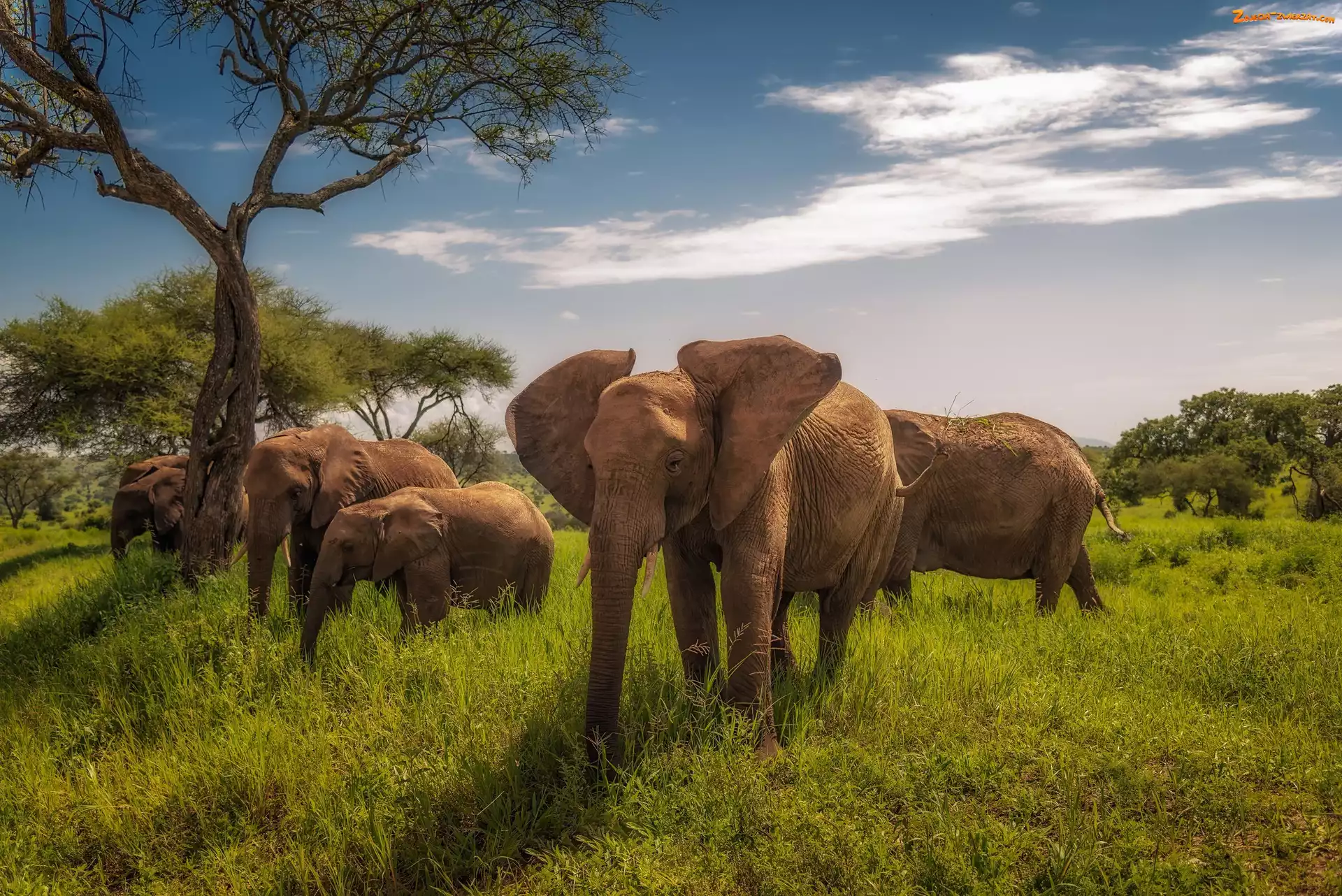 Zdjęcie: Sawanna, Trawa, Słonie, Drzewa