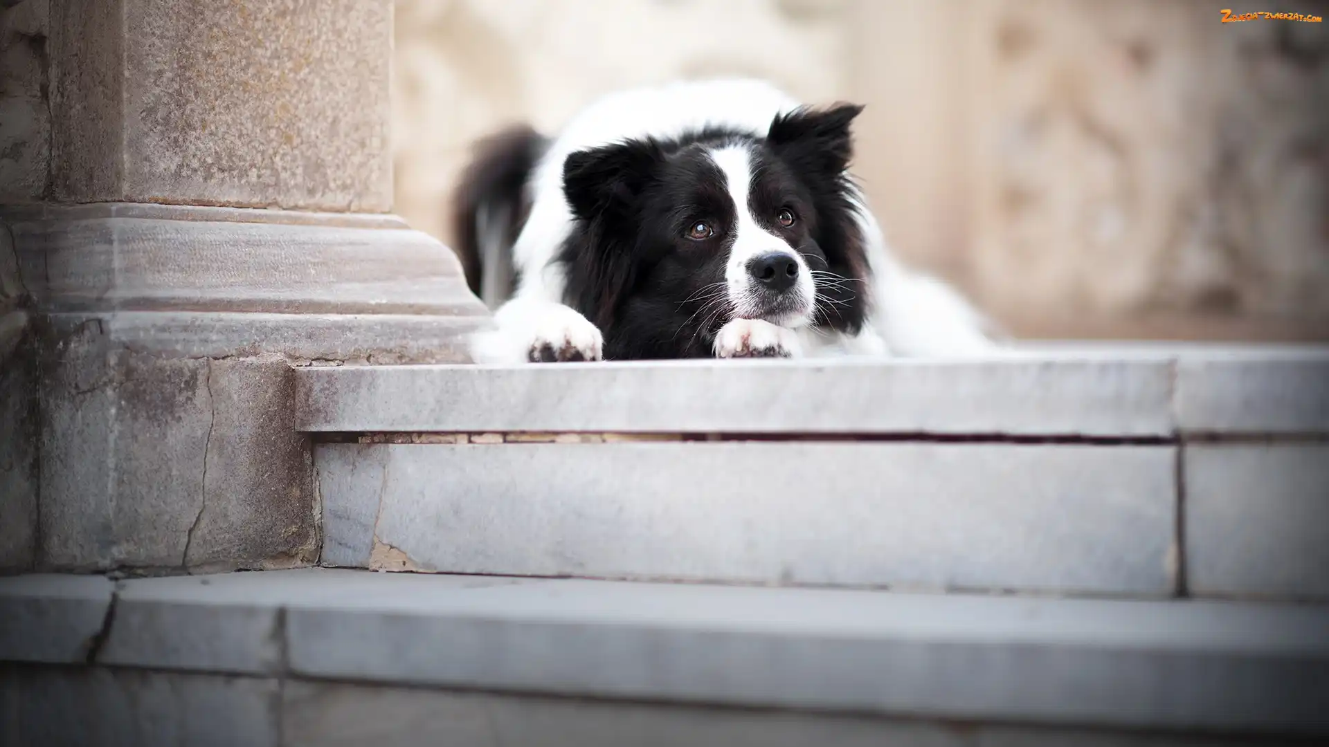 Zdjęcie: Schody, Mordka, Leżący, Pies, Border collie
