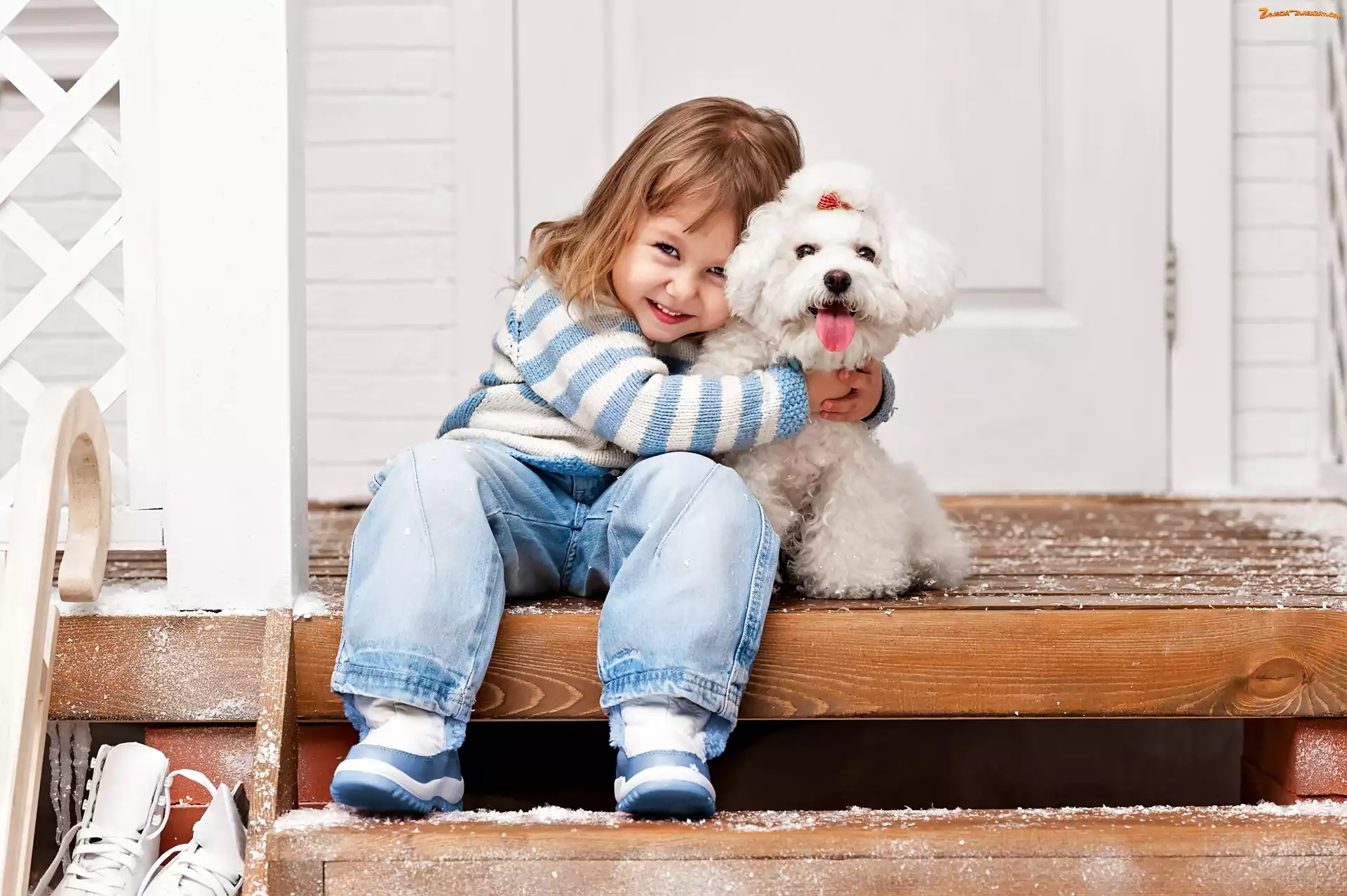 Zdjęcie: Schody, Dziewczynka, Pudel miniaturowy