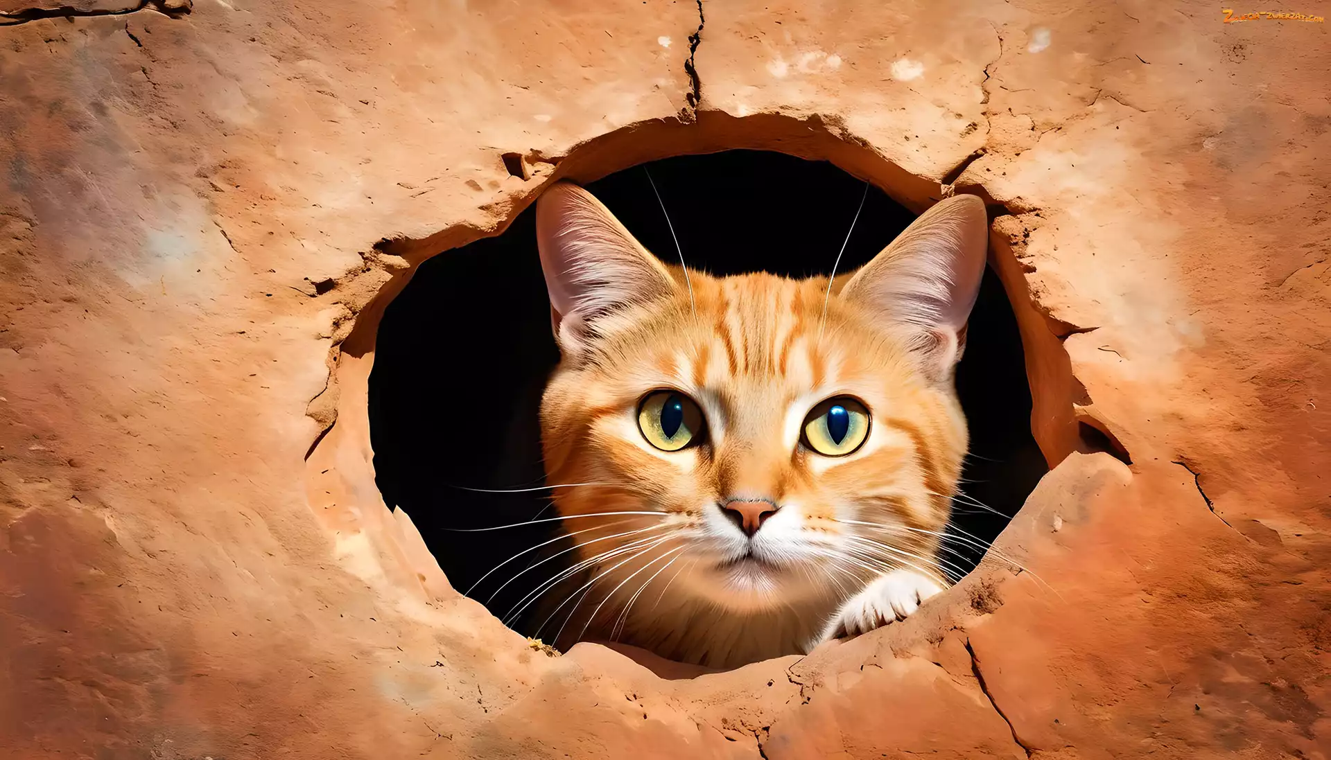 Zdjęcie: Kot, Dziura, Grafika, Ściana