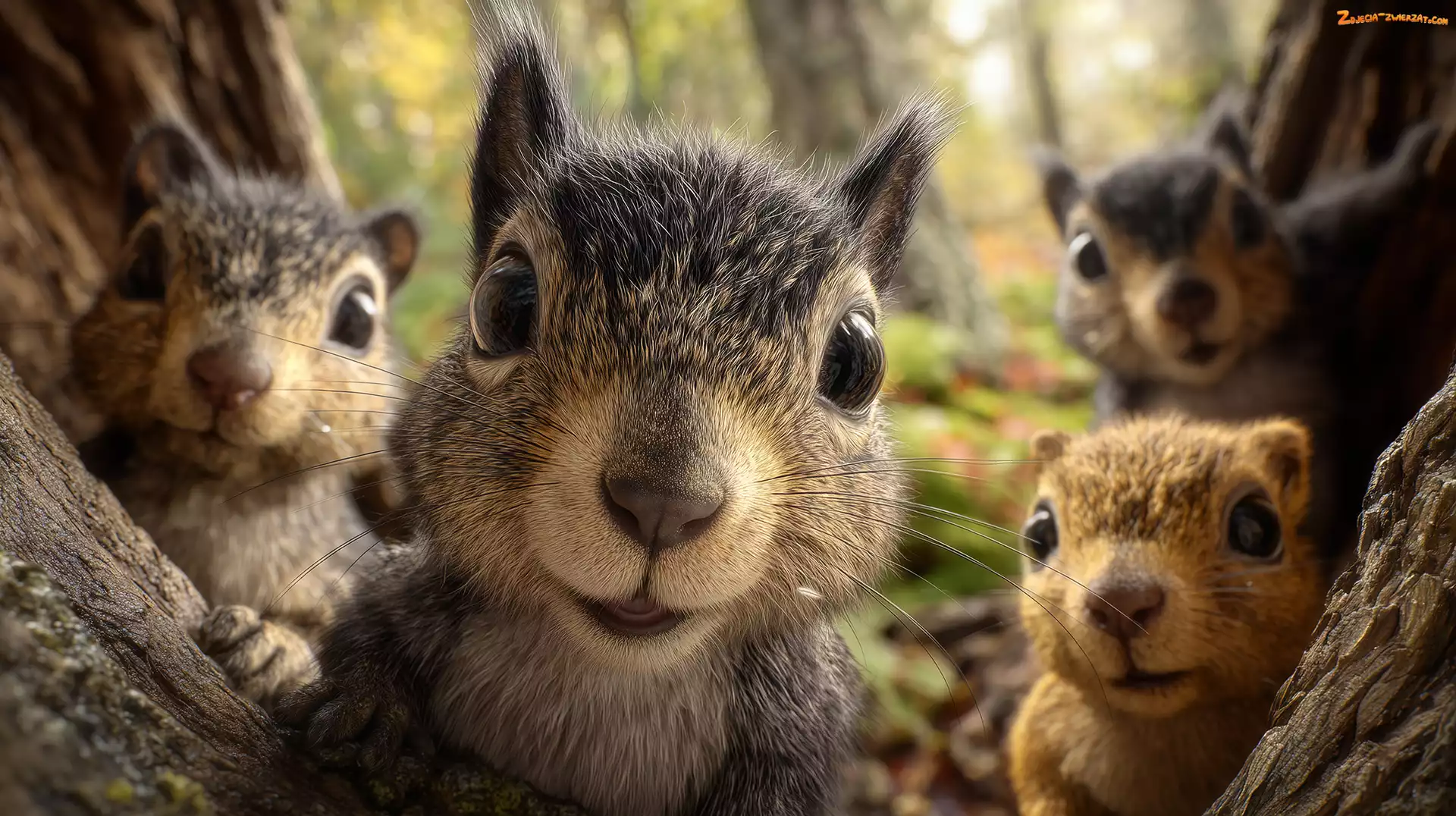Zdjęcie: Grafika AI, Wiewiórki, Selfie