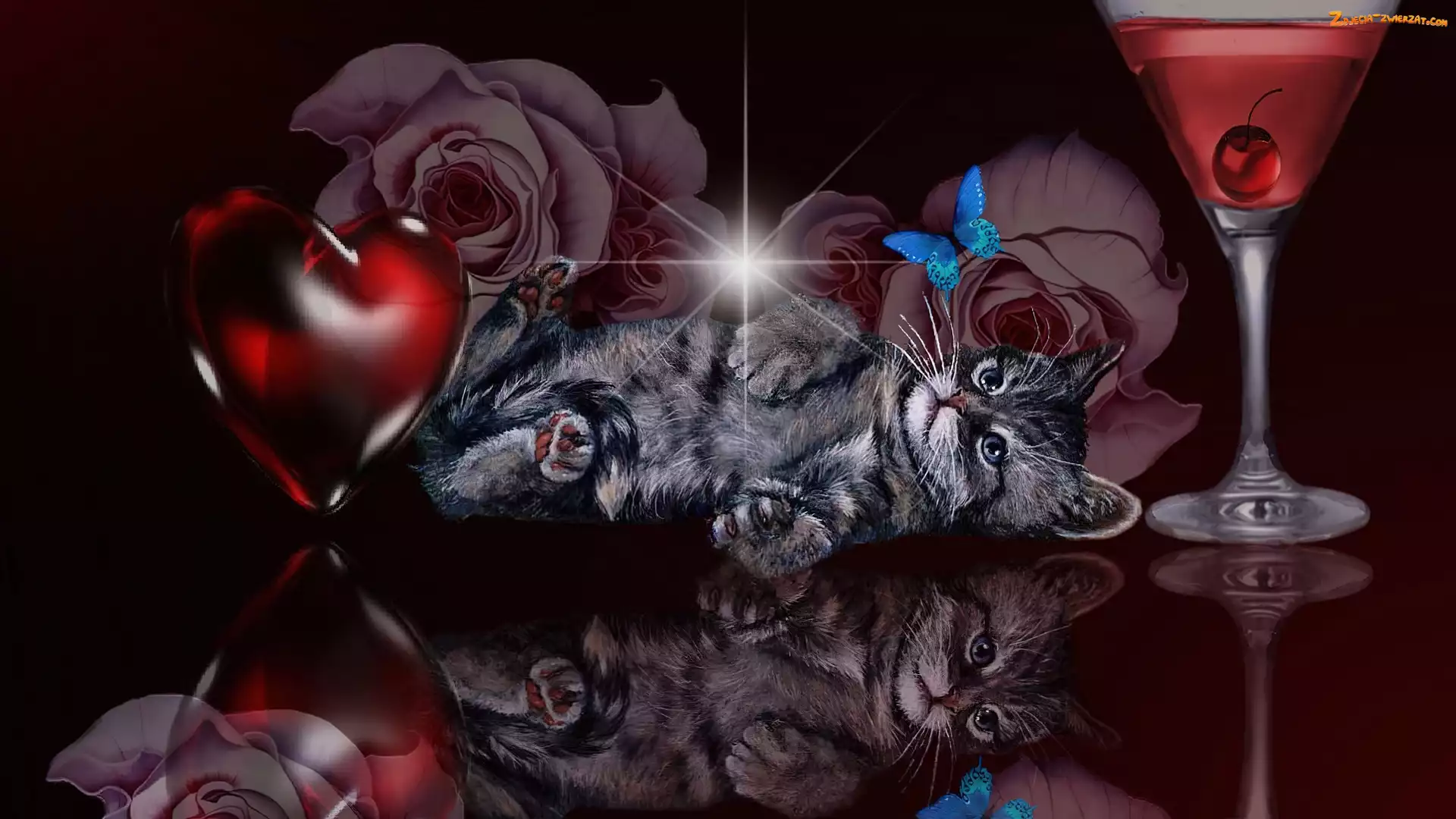 Zdjęcie: Kotek, Serce, Art, Odbicie