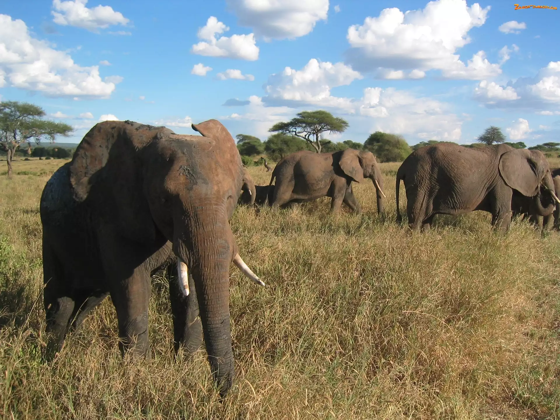 Zdjęcie: Serengeti, Chmurki, Sucha, Słonie, Trawa