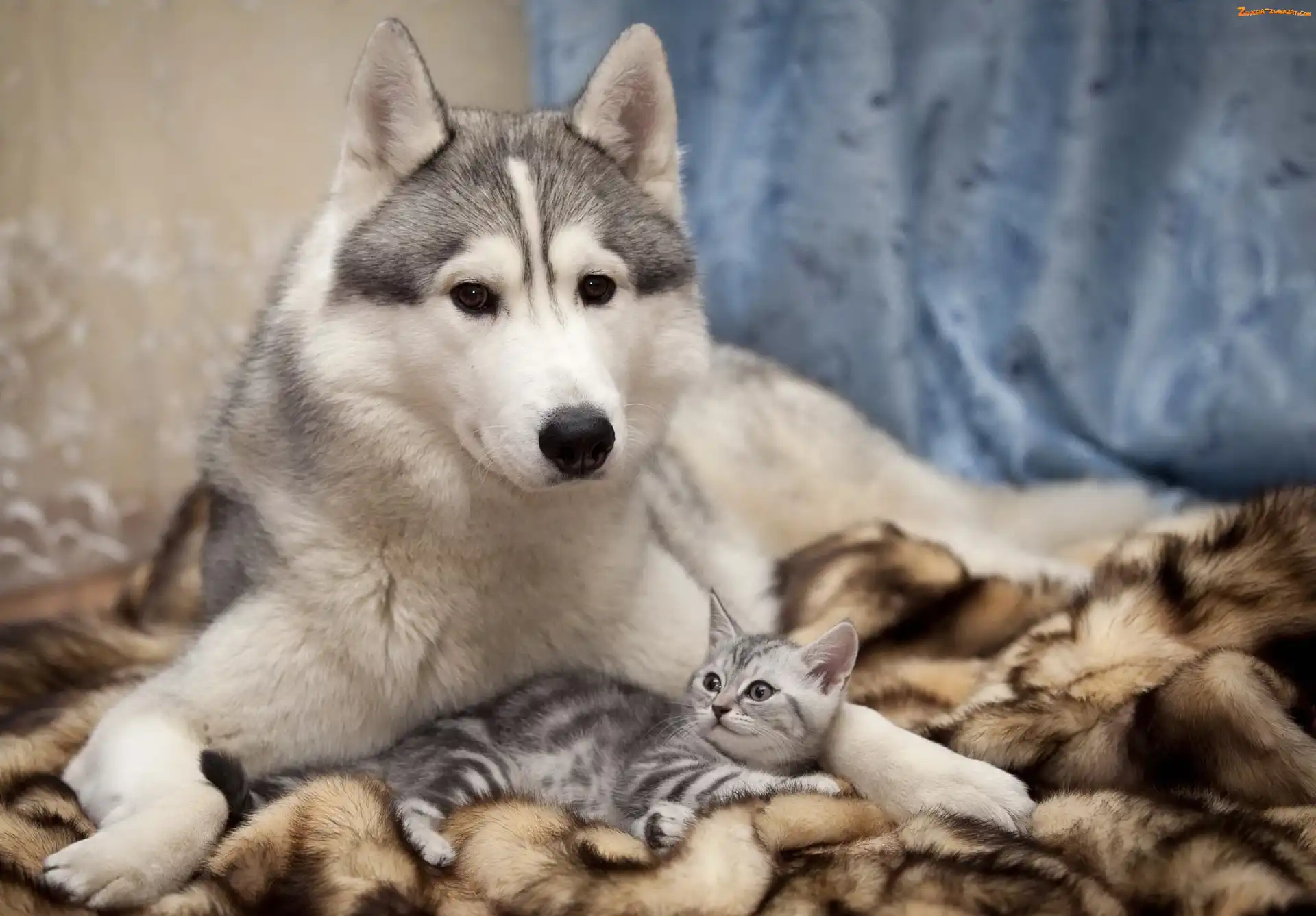 Zdjęcie: Siberian Husky, Kot, Futerko