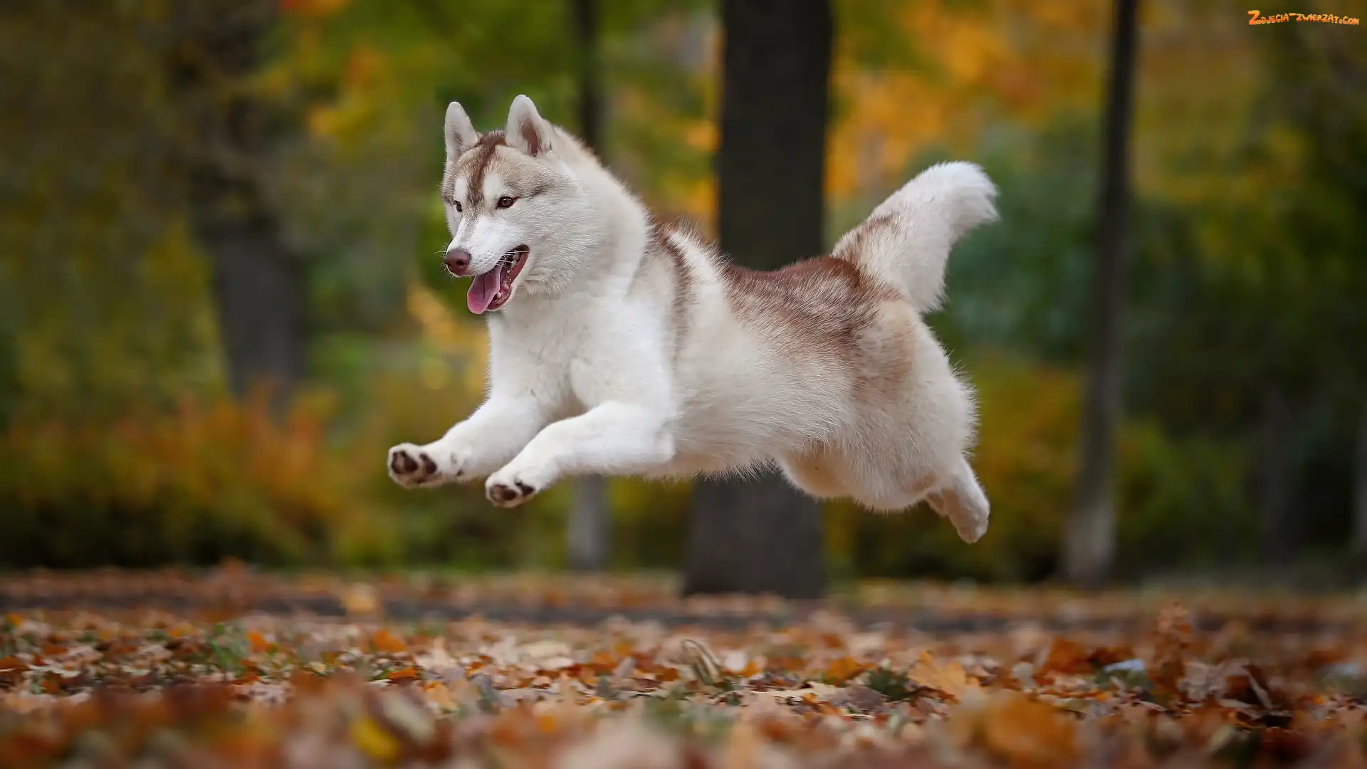 Zdjęcie: Siberian husky, Skaczący, Pies