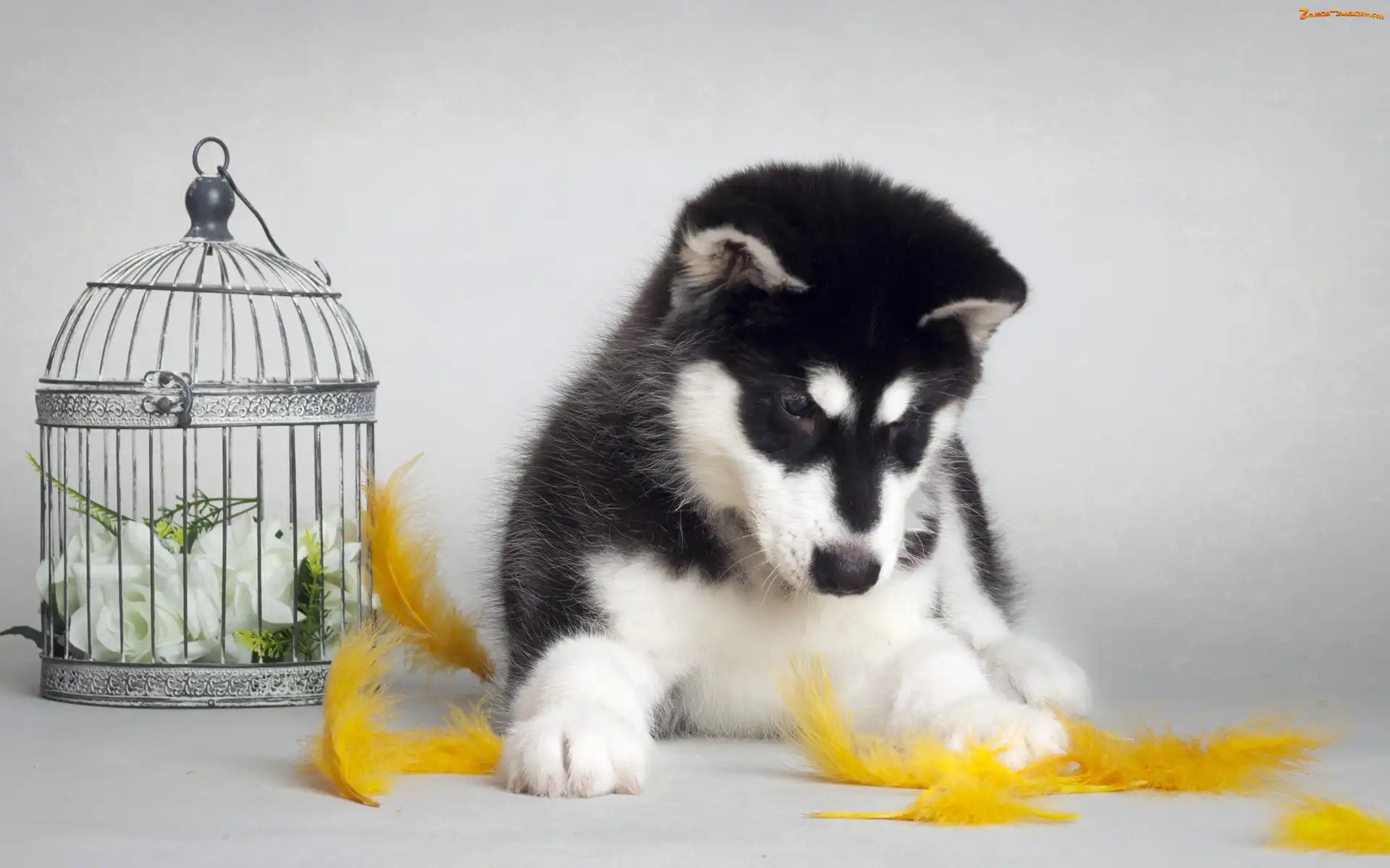 Zdjęcie: Siberian husky, Piórka, Szczeniak, Klatka