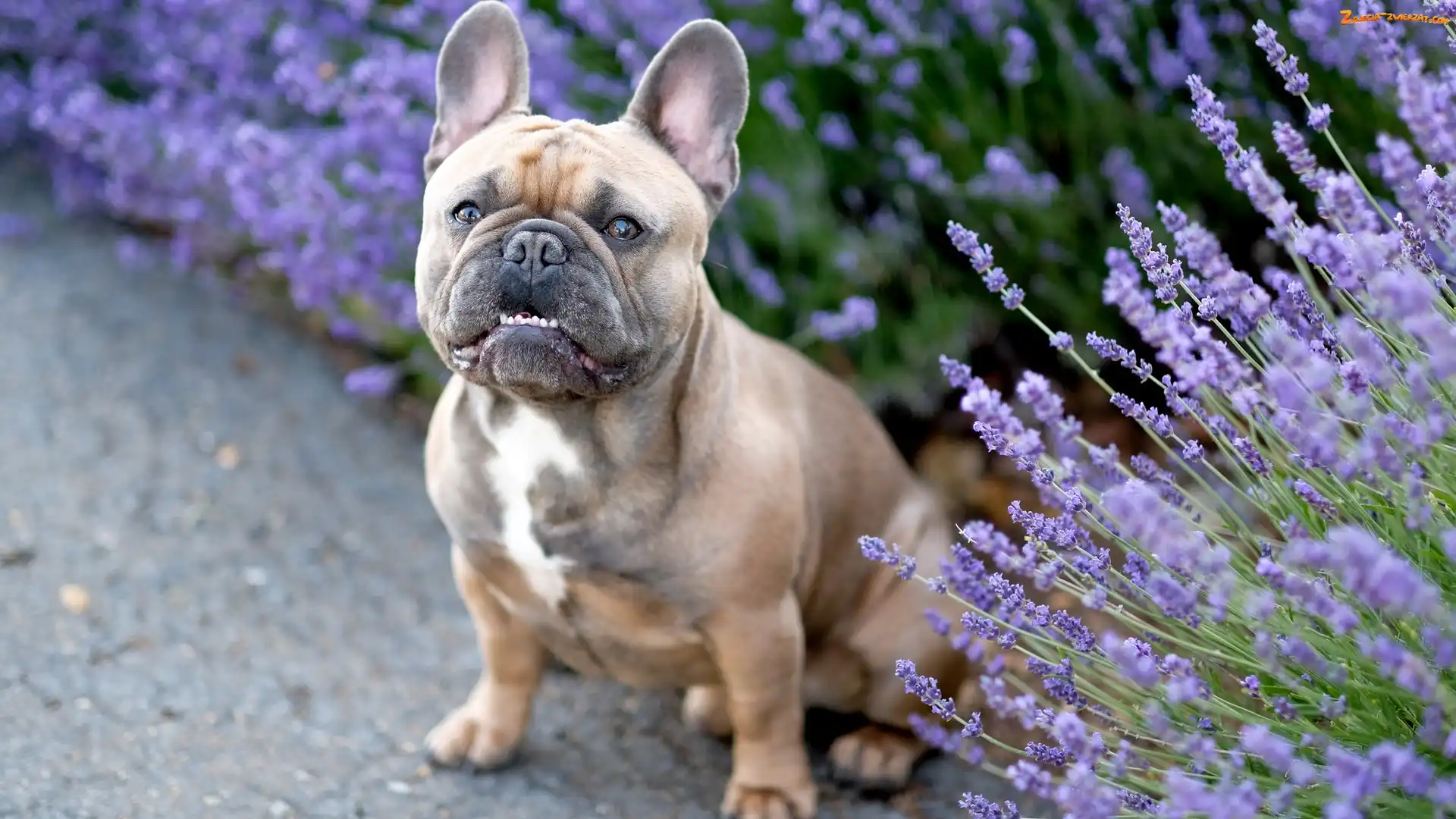 Zdjęcie: Siedzacy, Lawenda, Pies, Buldog francuski