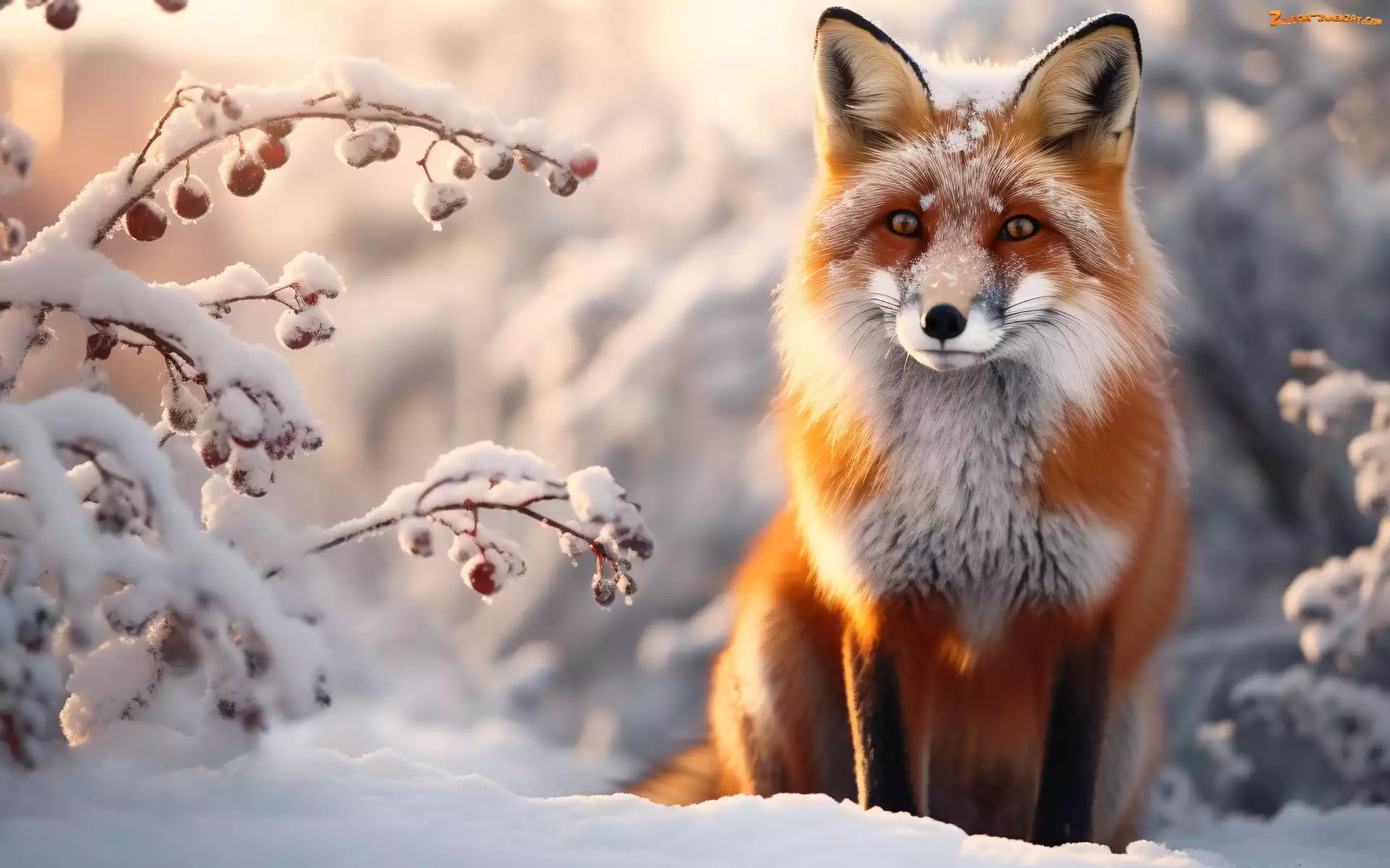 Gałązki, Lis, Zima, Siedzący, Śnieg, Ośnieżone