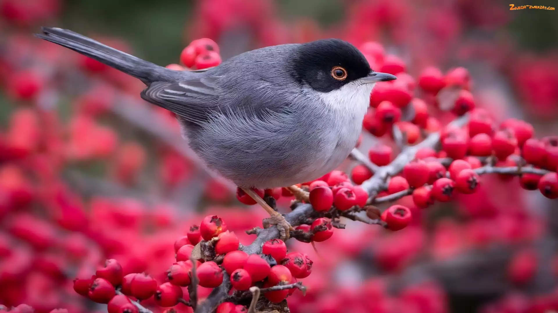Zdjęcie: Owoce, Pokrzewka aksamitna, Siwy, Ptak, Gałązka, Czerwone