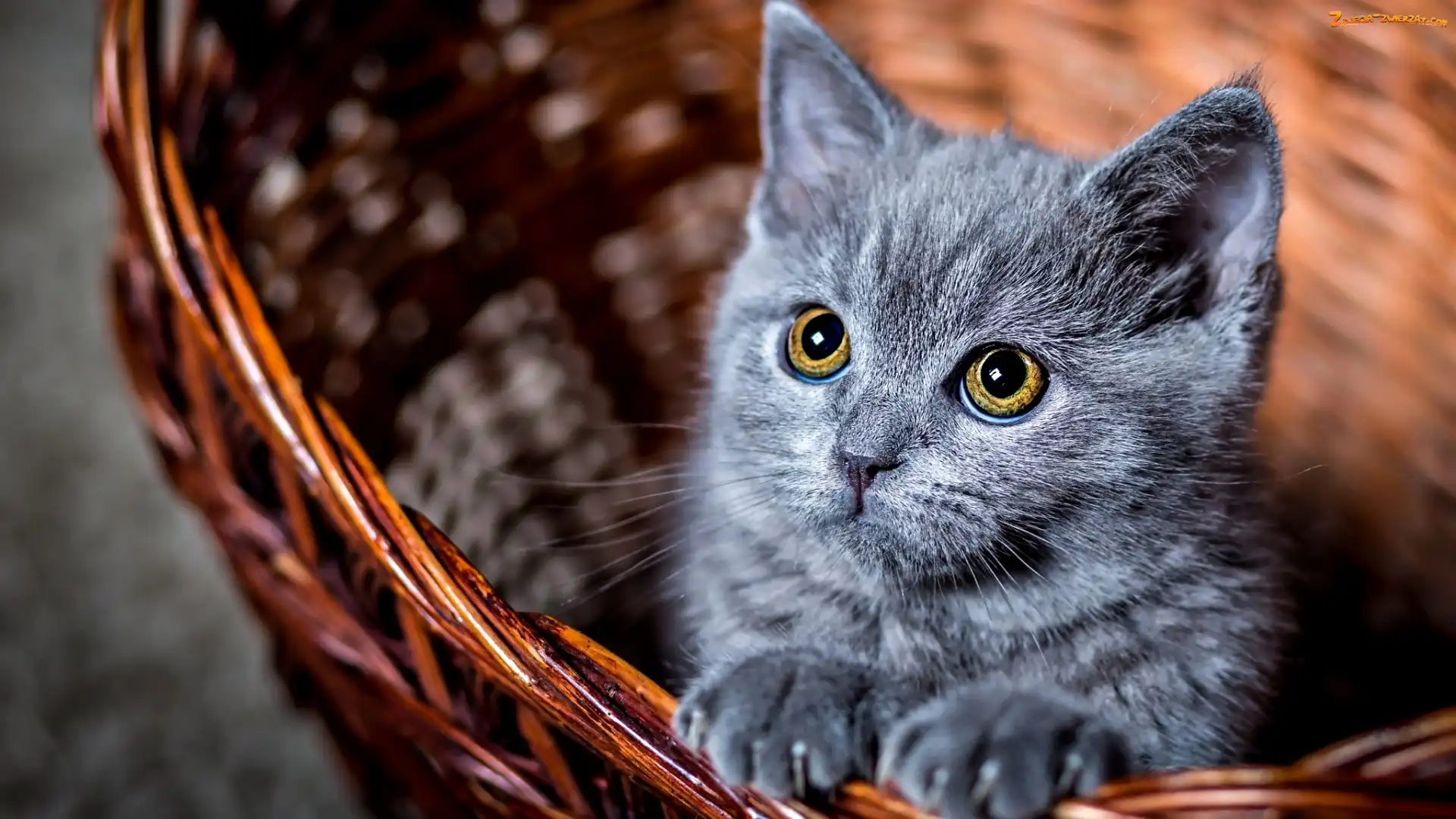 Zdjęcie: Siwy, Koszyk, Mały, Kotek