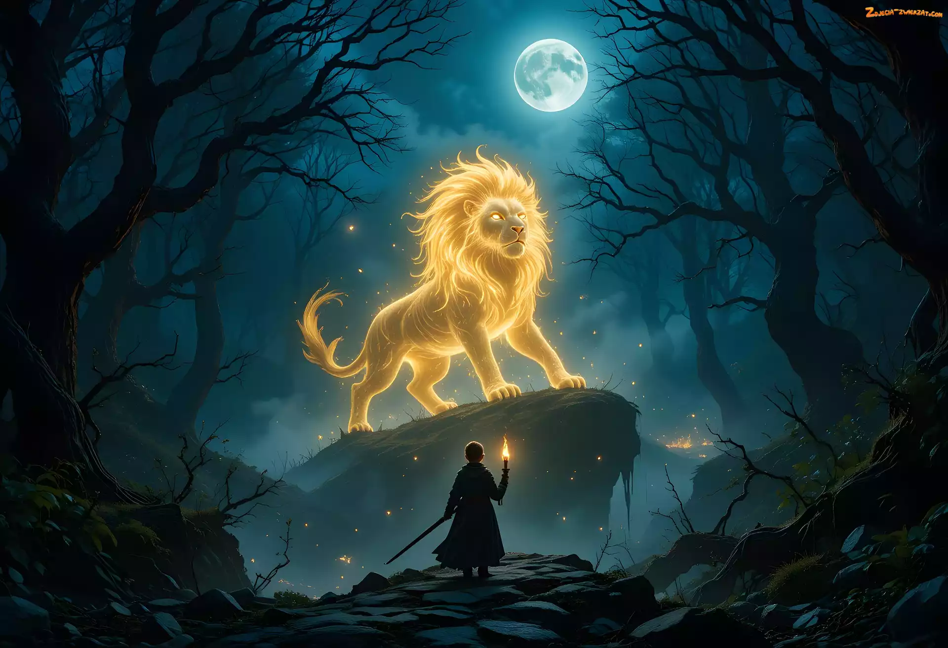 Zdjęcie: Fantasy, Chmury, Lew, Skała, Księżyc, Dziecko