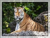 Zdjęcie: Leżący, Tygrys, Rośliny, Skała