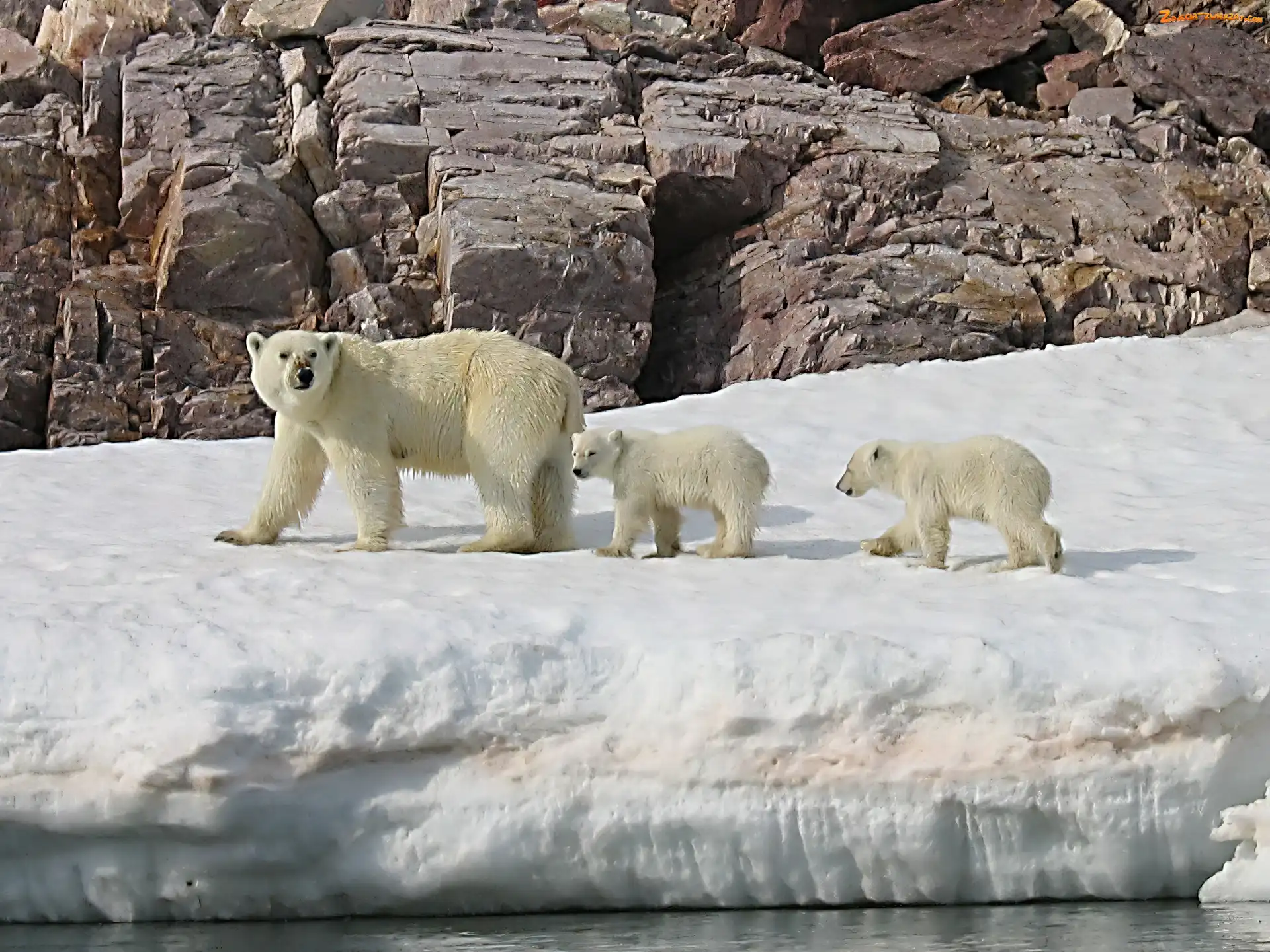 Zdjęcie: Skała, Lód, Mama, Niedzwiedź Polarny, Dzieci
