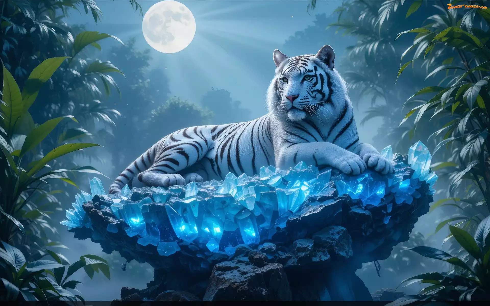 Zdjęcie: Księżyc, Skała, Rośliny, Grafika, Tygrys