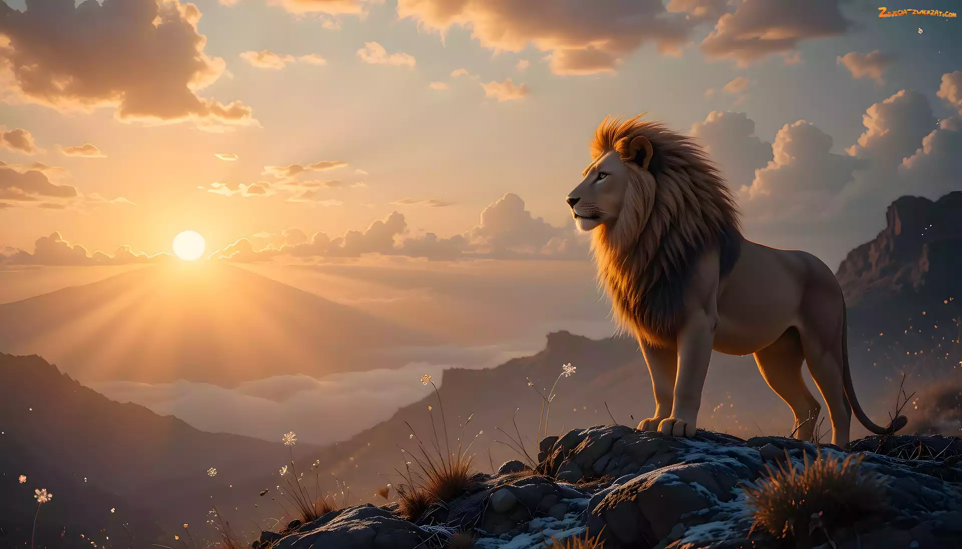 Zdjęcie: Lew, Skała, Zachód słońca, Góry