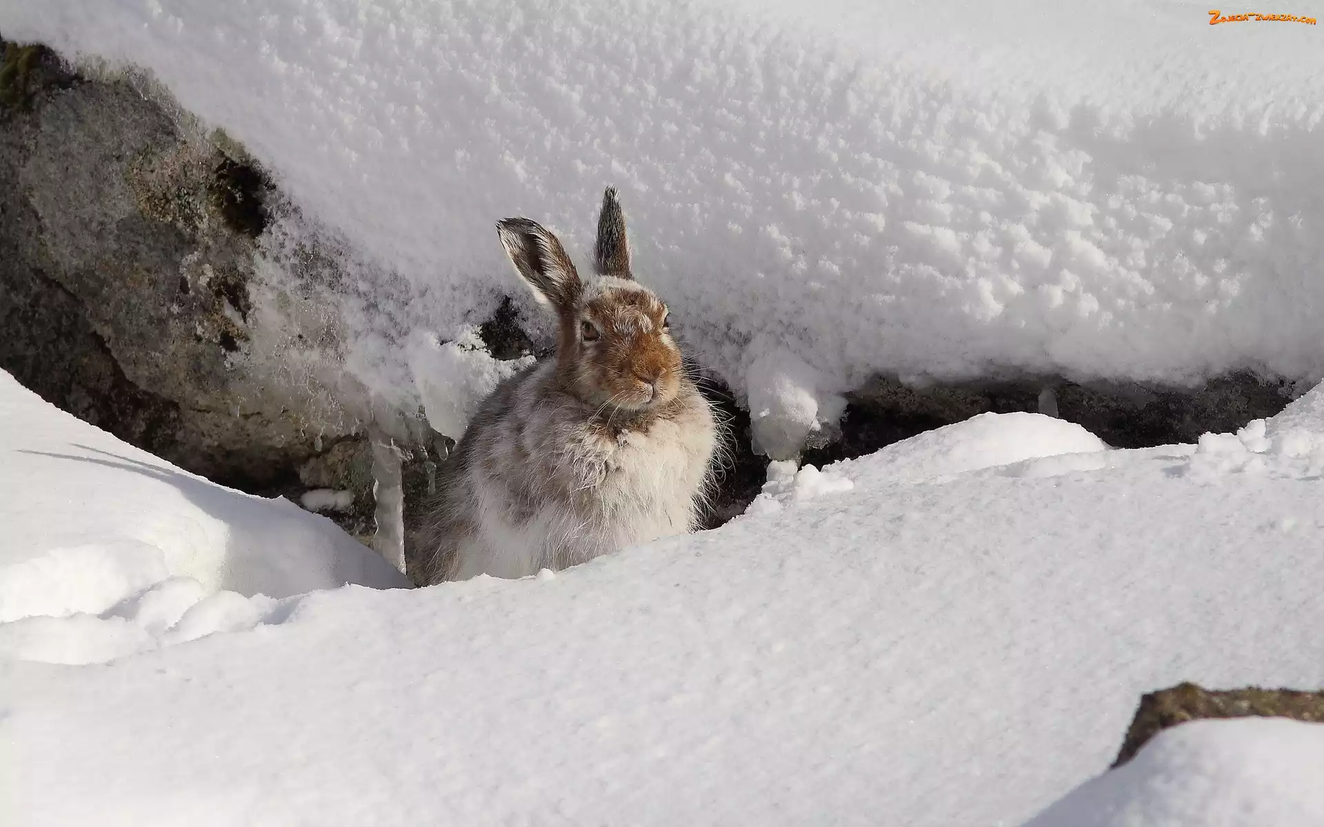 Zdjęcie: Skała, Zima, Zając, Śnieg