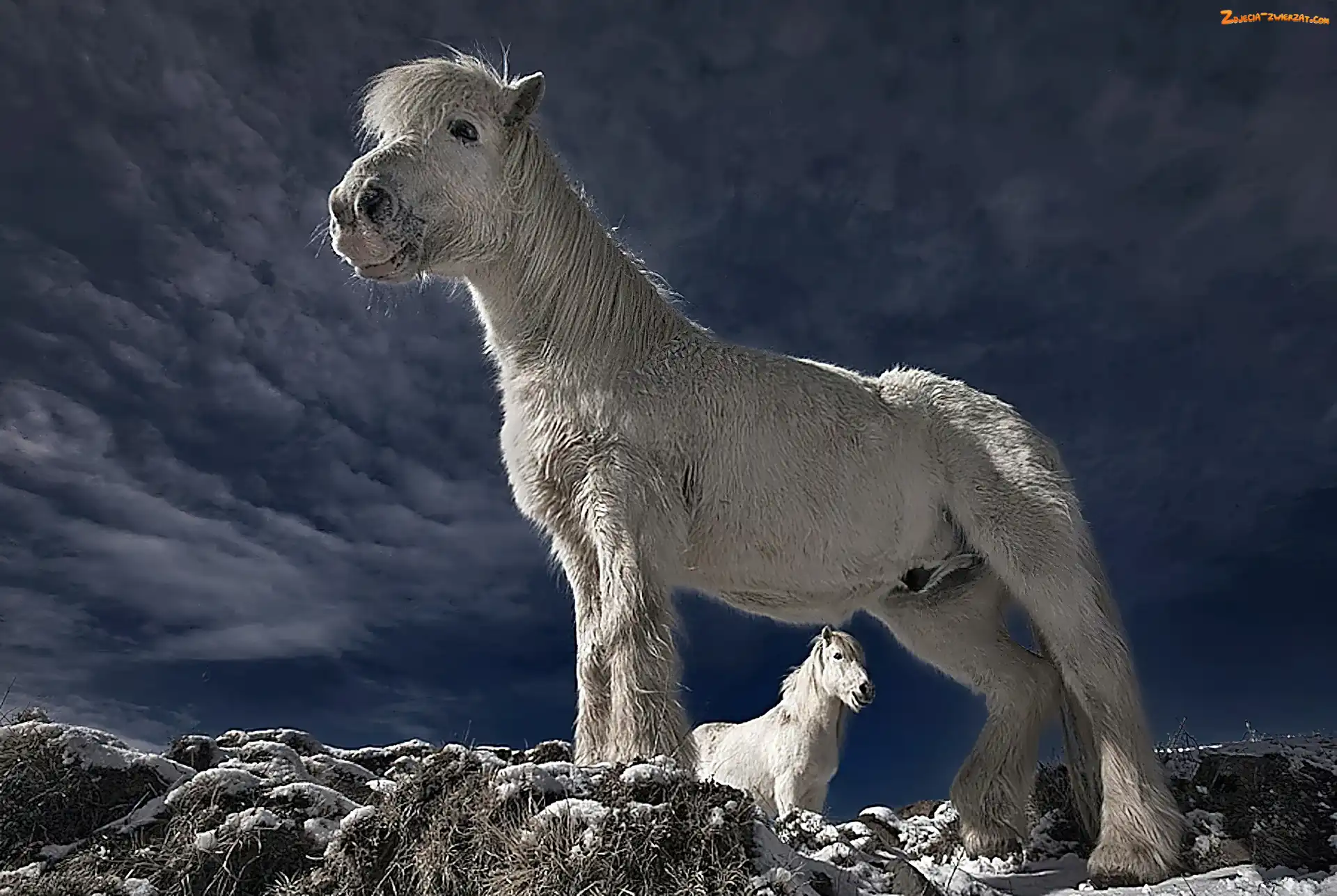 Zdjęcie: Skały, Śnieg, Konie, Białe, Niebo