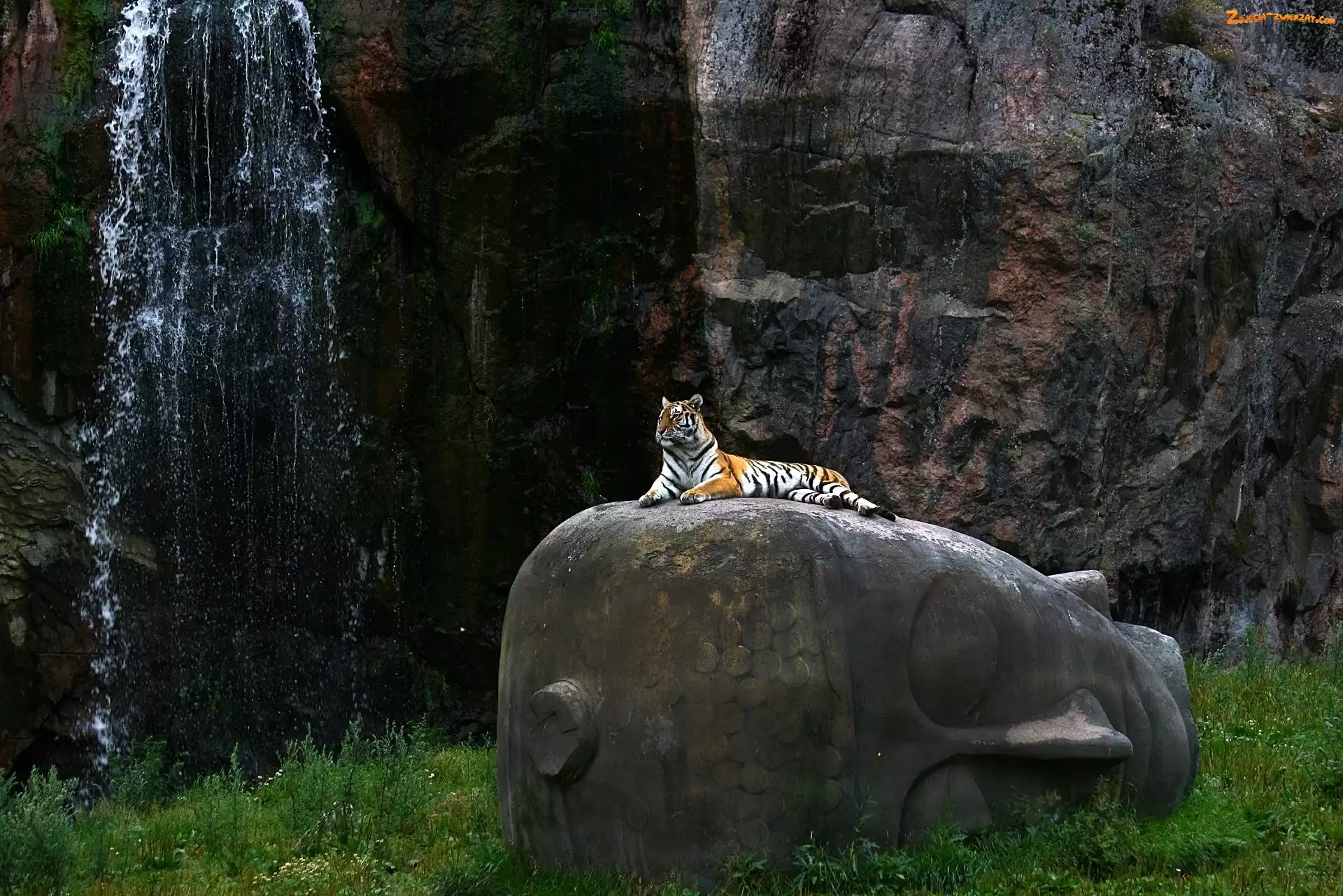 Zdjęcie: Skały, Tygrys, Wodospad, Posąg
