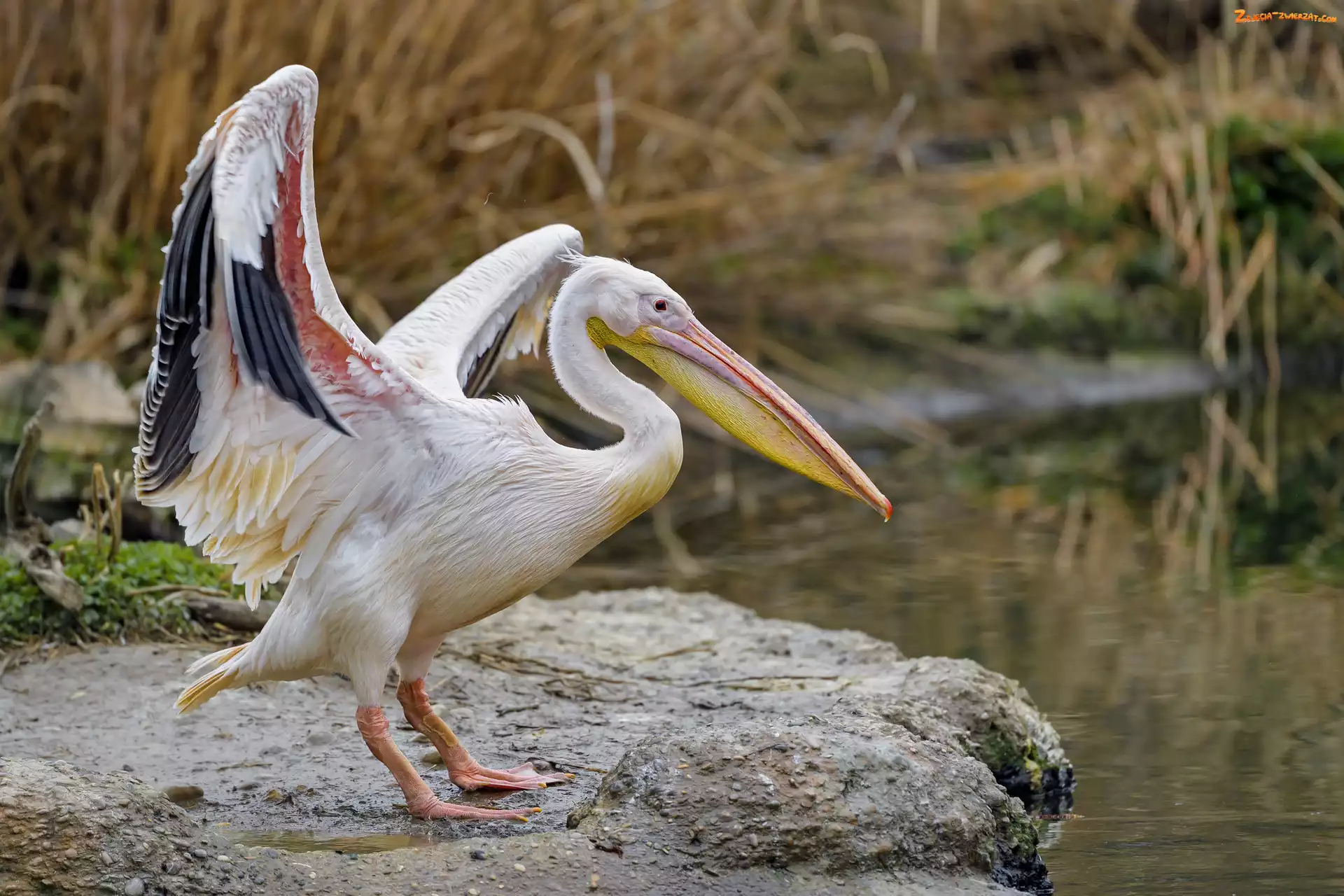 Pelikan, Rozpostarte, Skała, Skrzydła