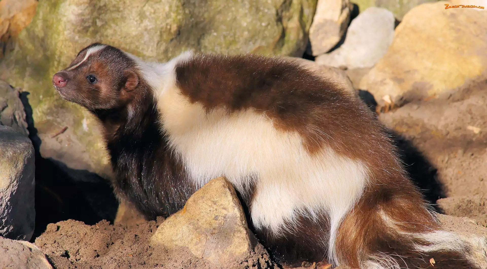 Skunksy, łąka Lis, Skunks Skunks, Skały Skunks, Mała, Sarenka Biały, Zwyczajny, Czarno, Skunks Mały, Skunks Skunks, Kwiaty Biały, Skunks Skunks, Skały Kamienie, Skunks, Głazy Skunks, Koty, Czarno, Dwa, Białe