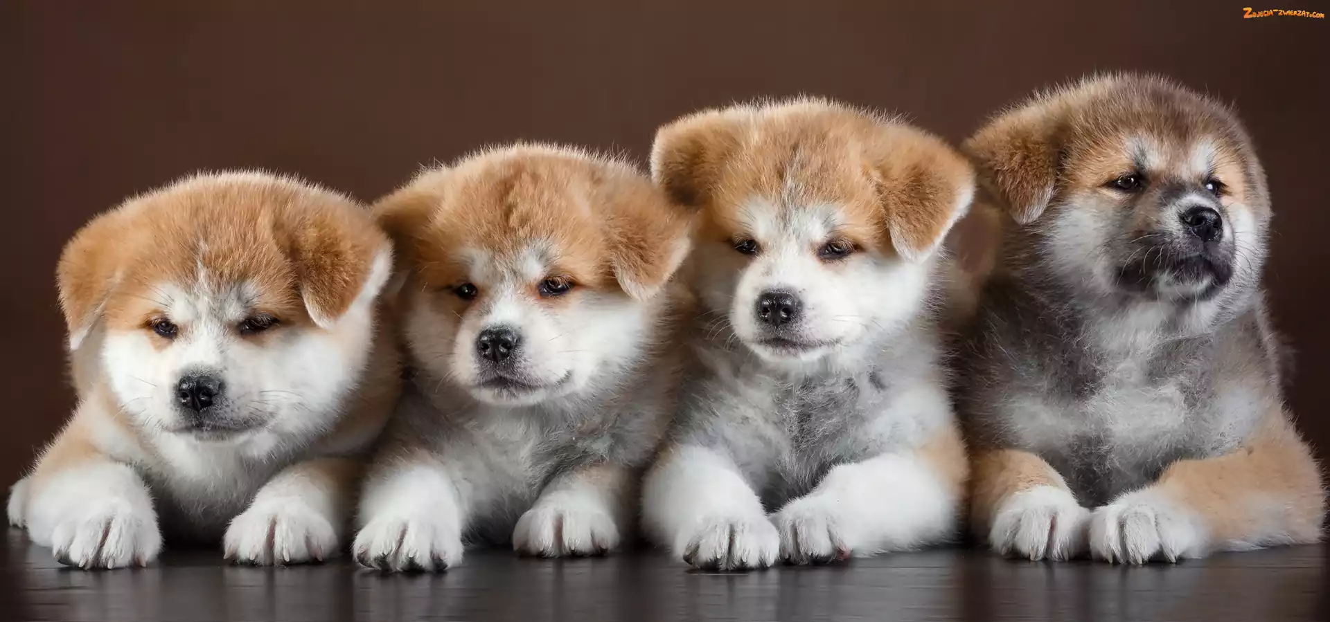 Słodkie, Akita inu, Cztery, Szczeniaki