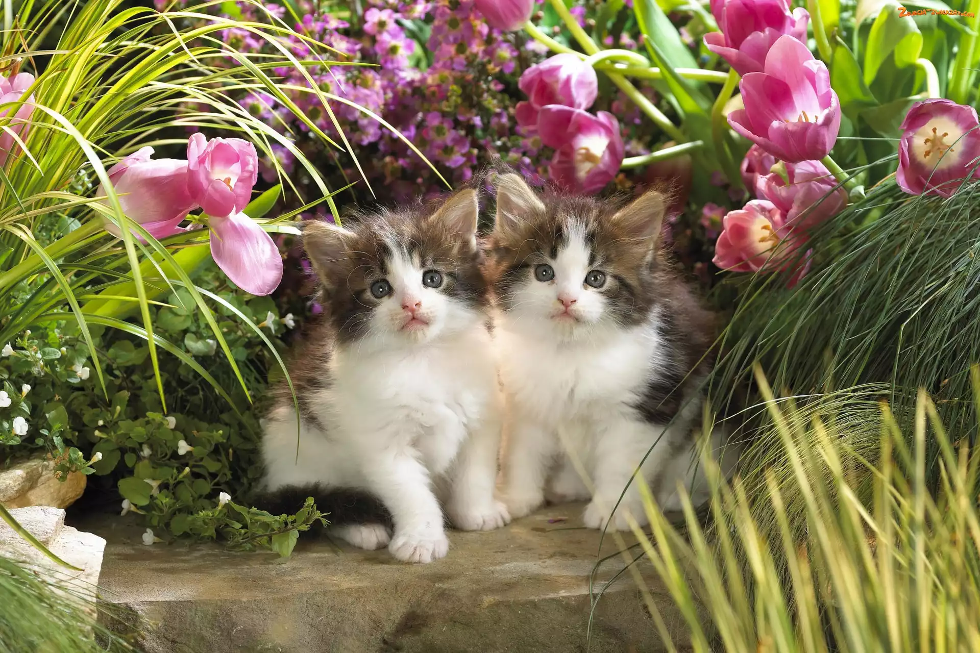 Zdjęcie: Słodkie, Kwiaty, Dwa, Kotki