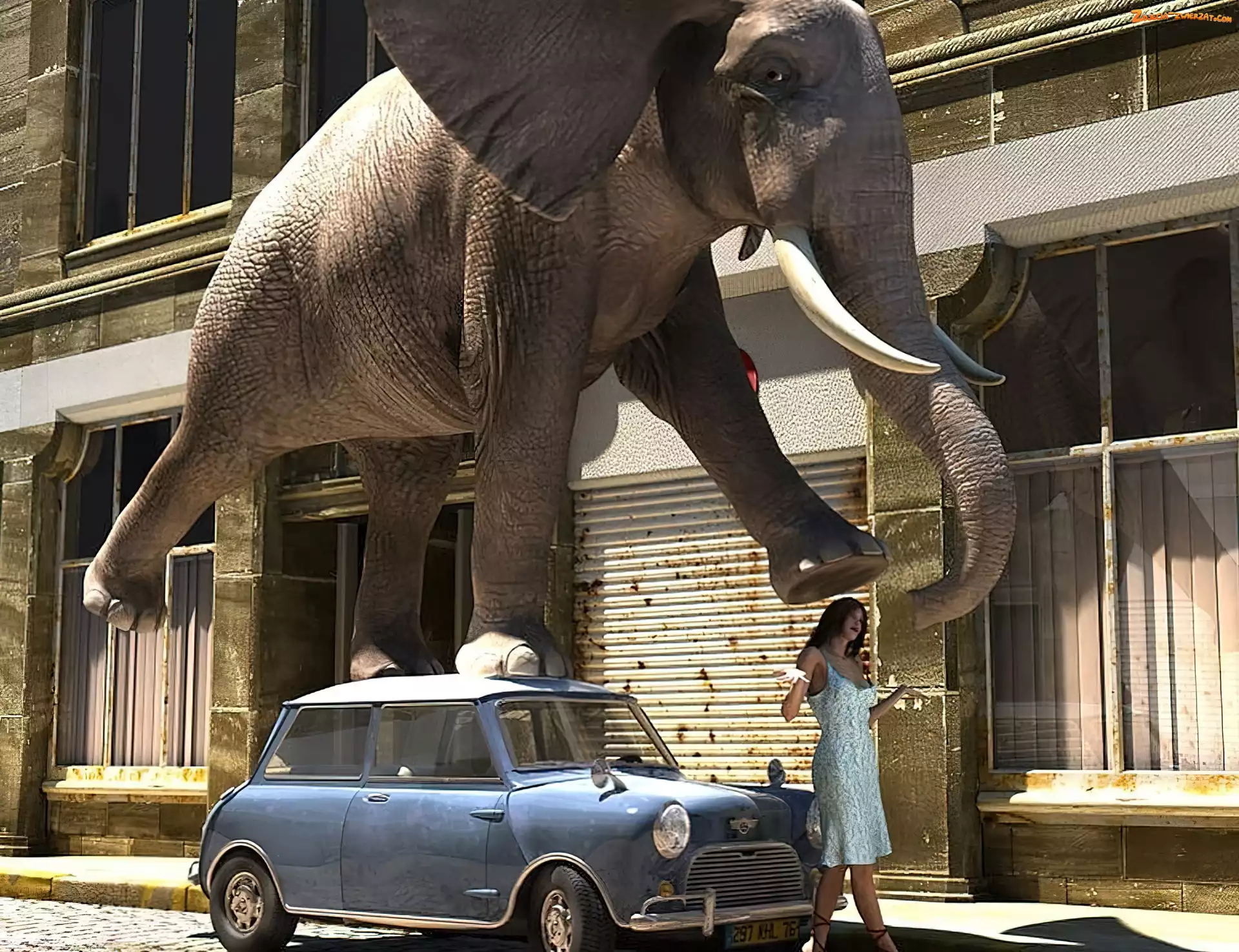 Zdjęcie: Dziewczyna, Słoń, Samochód