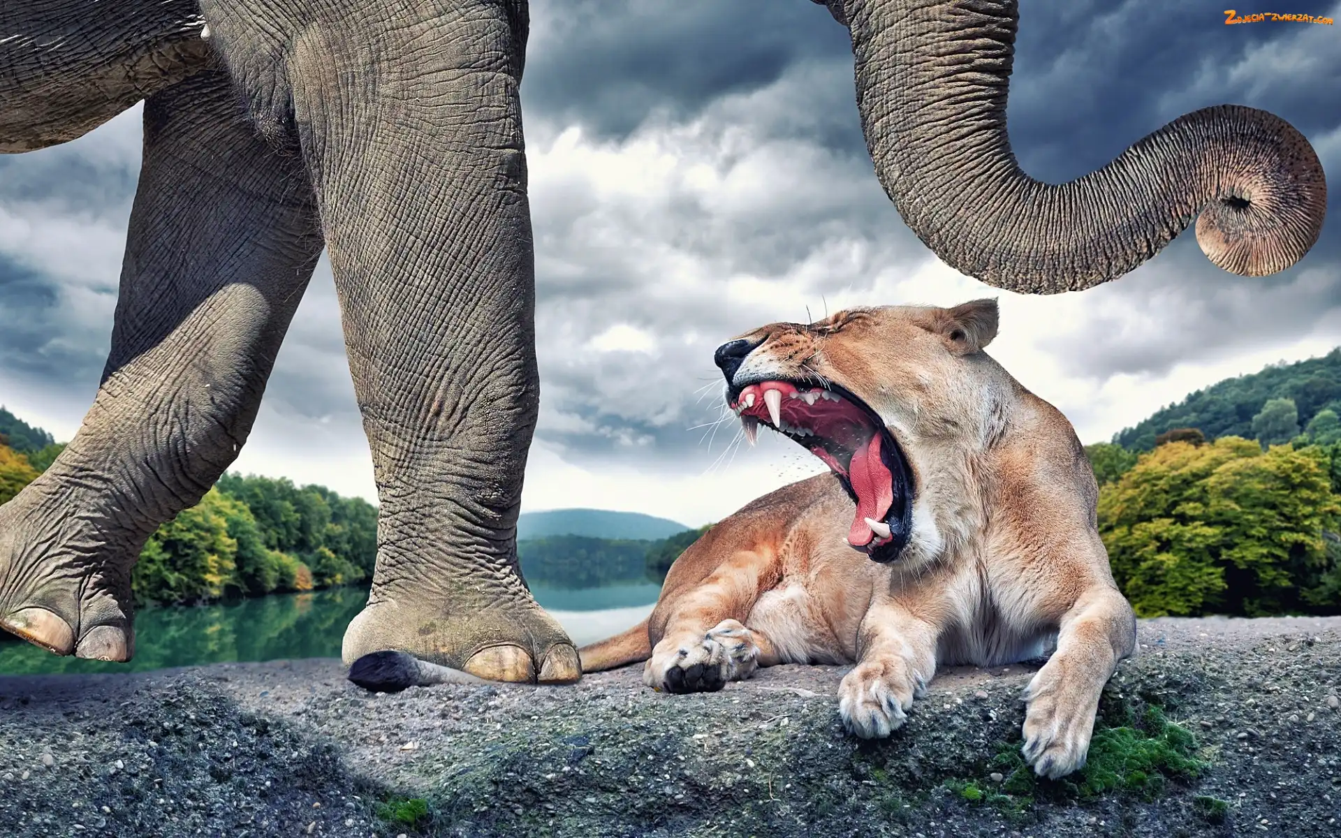 Zdjęcie: Słoń, Śmieszne, Nieostrożny, Lew