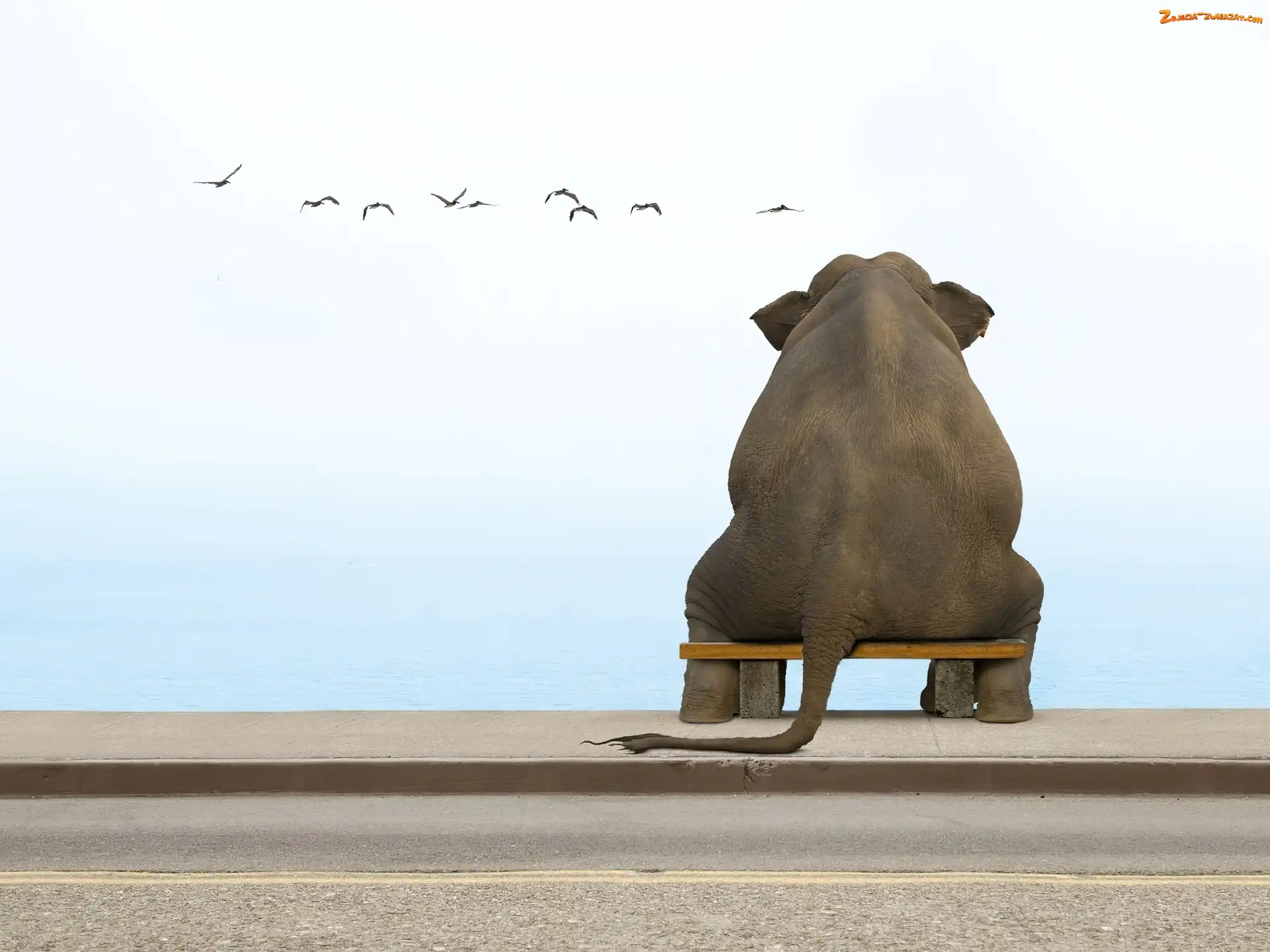 Zdjęcie: Ławka, Ptaki, Słoń, Droga