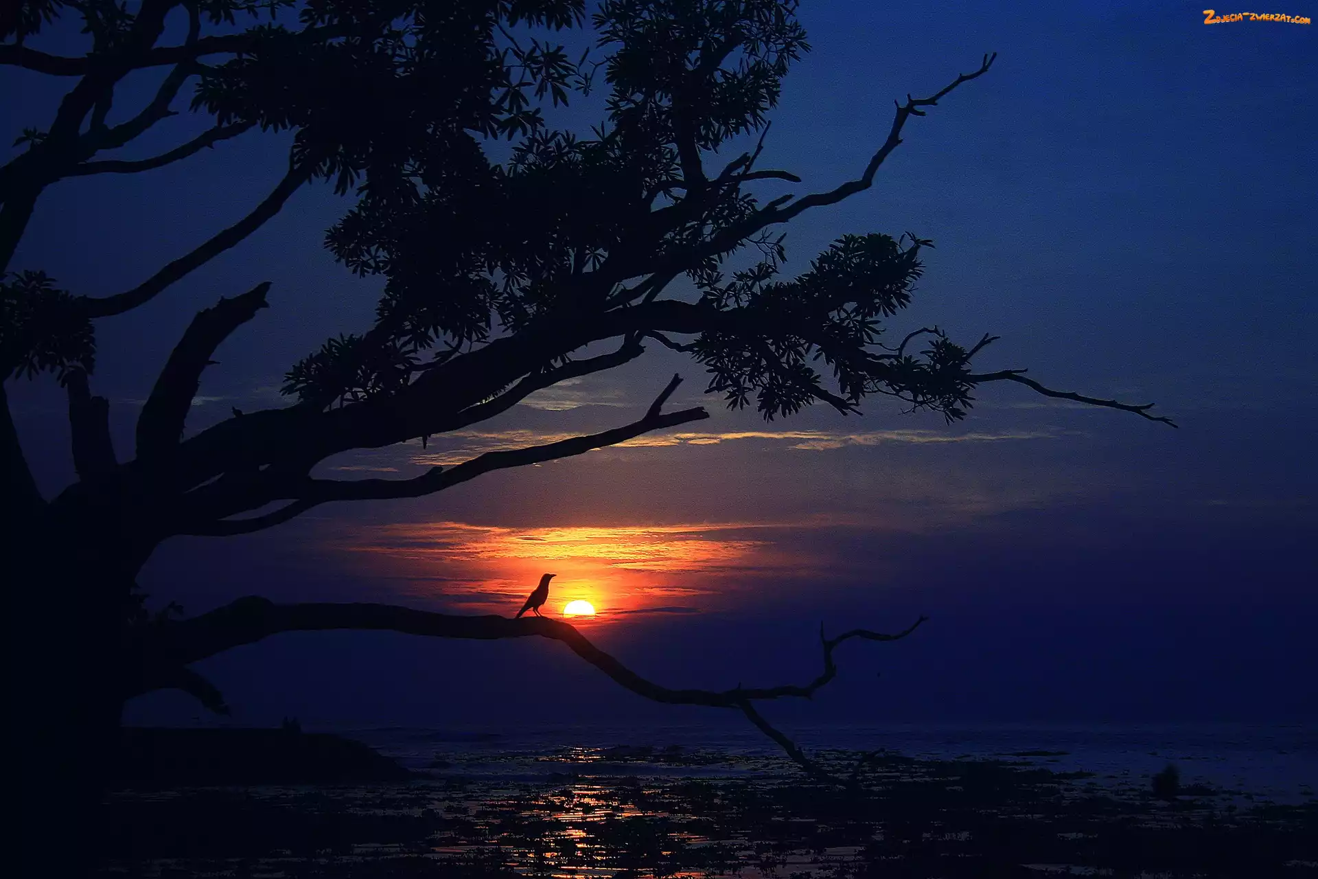 Zdjęcie: Słońca, Zachód, Ptak, Drzewo, Morze