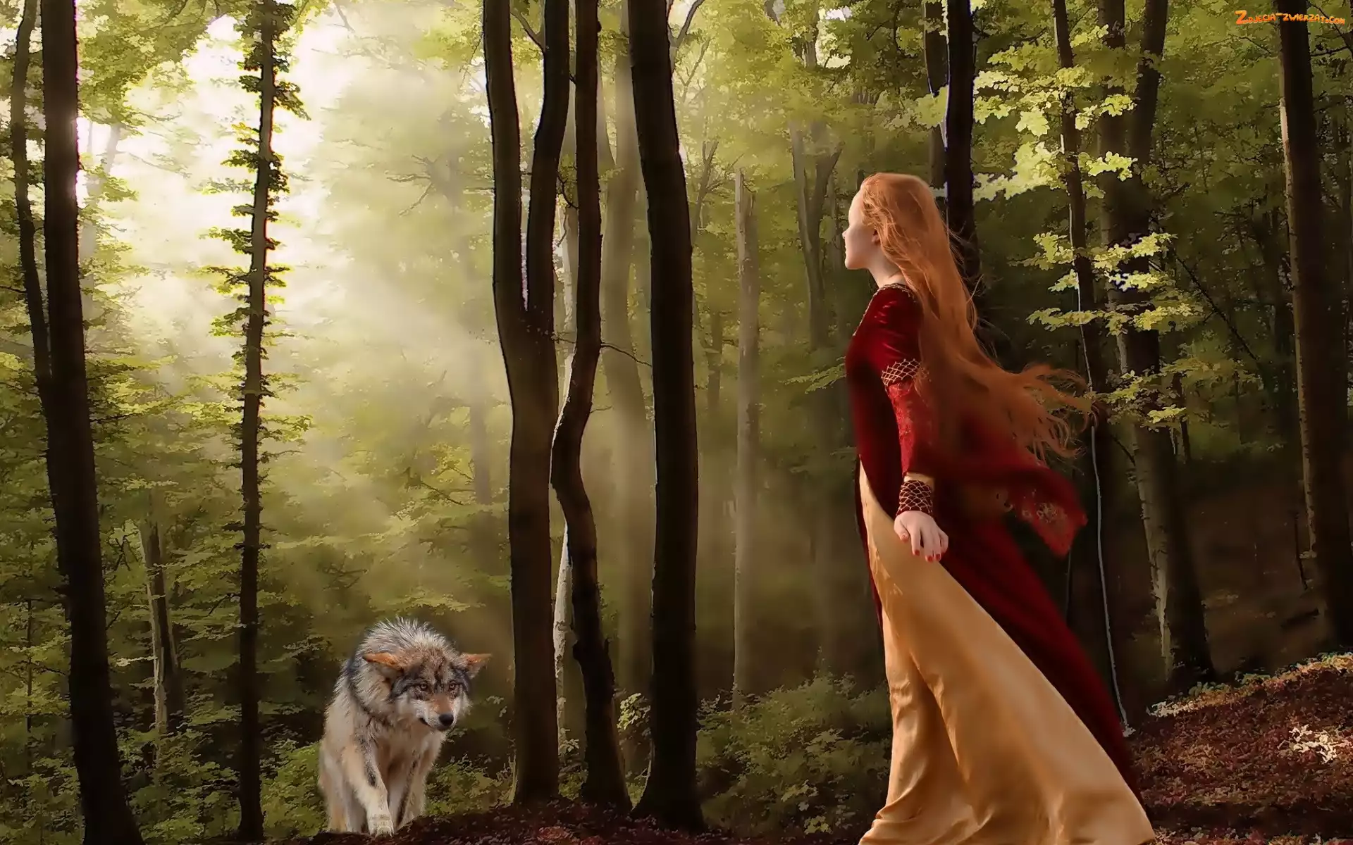 Las, Przebijające Światło, Dziewczyna, Wilk