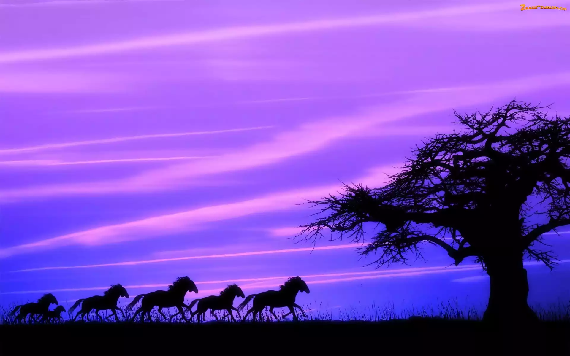 Zdjęcie: Słońca, Wschód, Koni, Stado, Drzewo