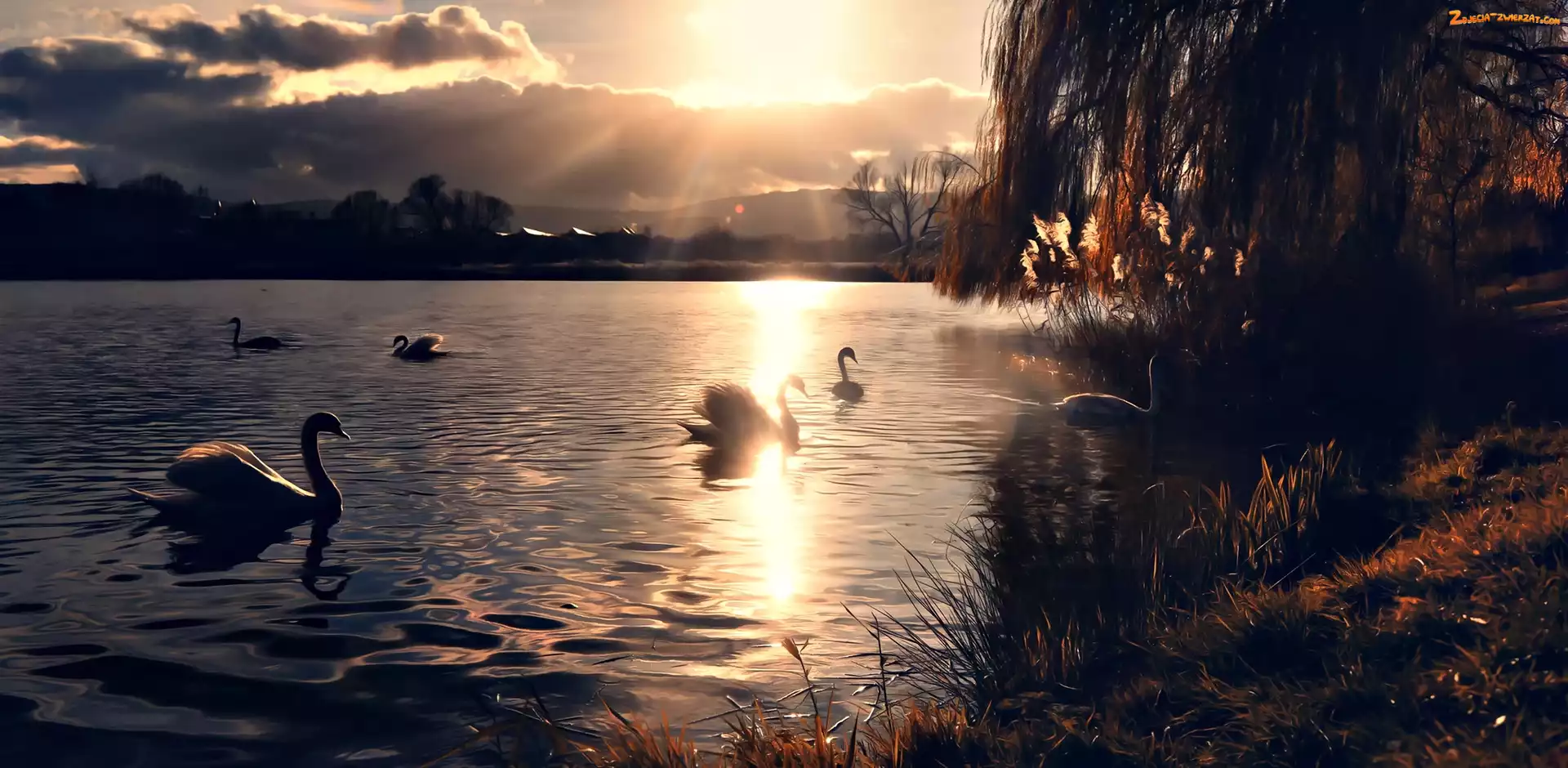 Łabędzie, Wschód Słońca, Jezioro