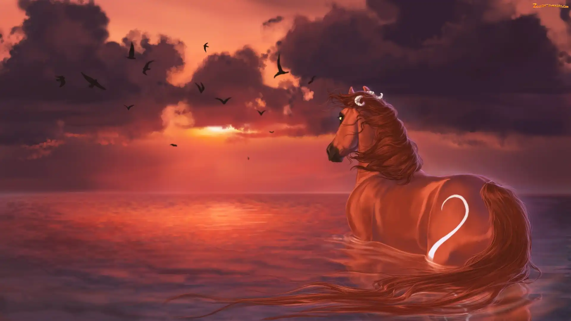 Zdjęcie: Słońca, Morze, Zachód, Koń