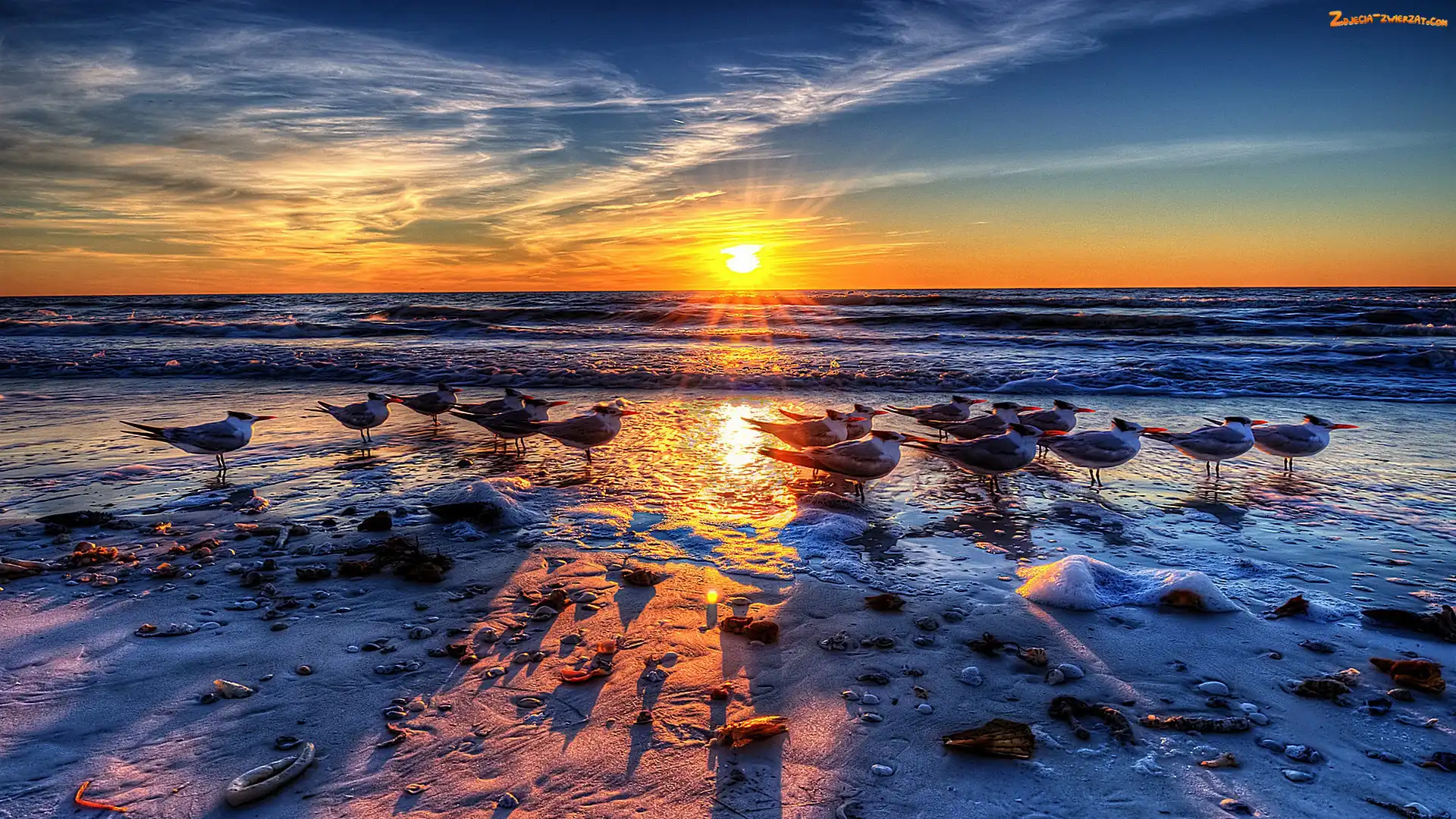 Zdjęcie: Słońca, Ptaki, Zachód, Morze
