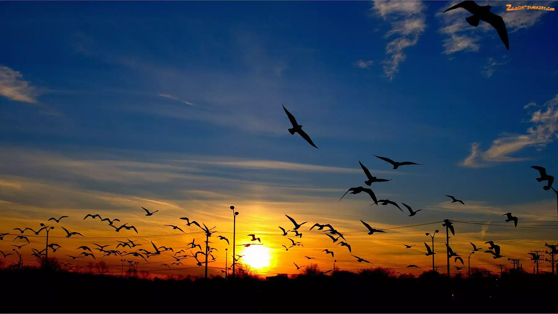 Zdjęcie: Słońca, Ptaki, Zachód, Niebo
