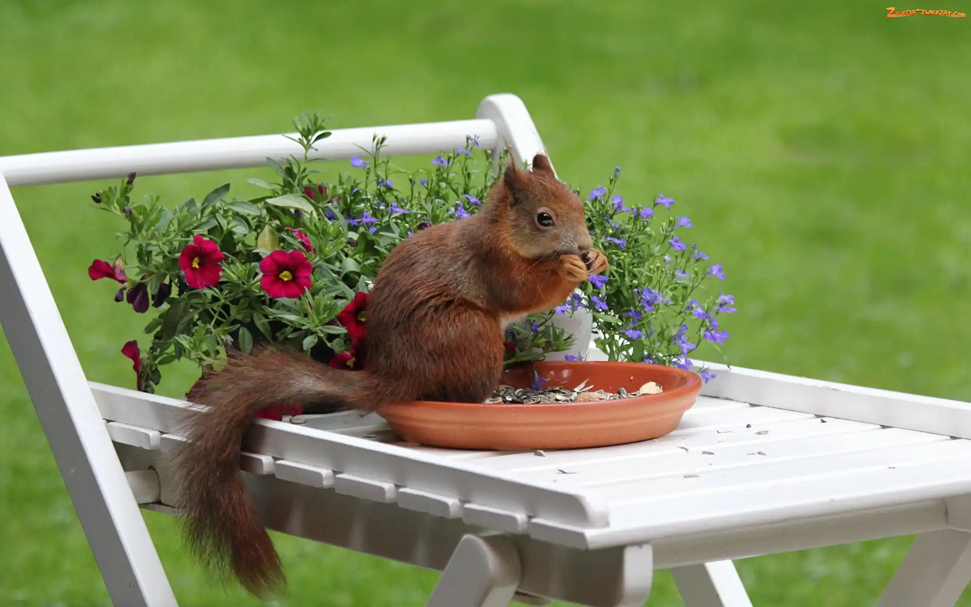 Słonecznik, Wiewiórka, Kwiaty, Ogrodowy, Tacka, Mebel