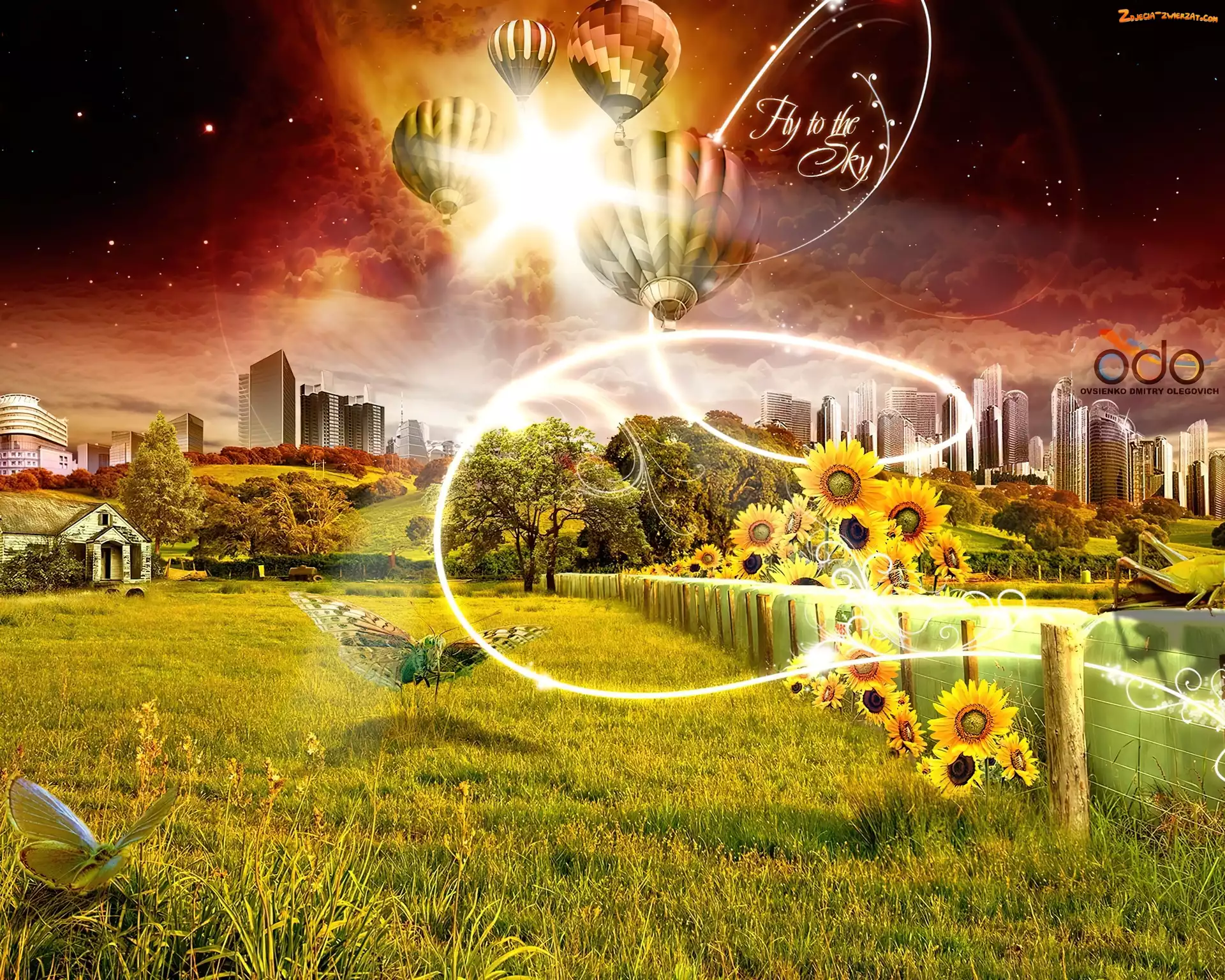 Balony, Słoneczniki, Motyle