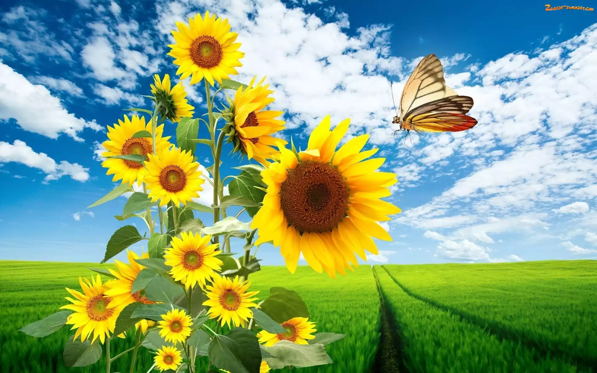 Zdjęcie: Grafika, Słoneczniki, Motyl