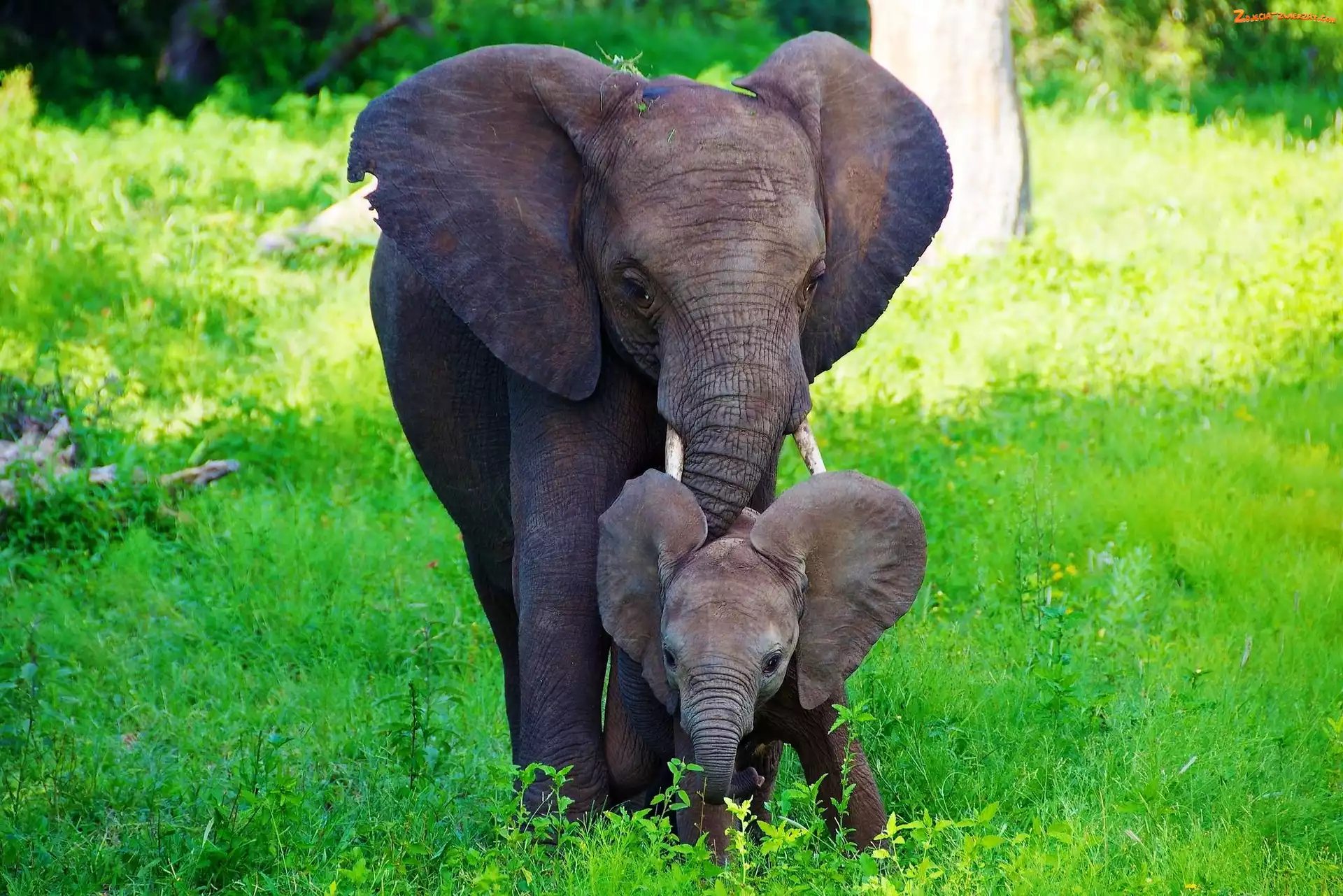 Zdjęcie: Trawa, Słonica, Słoniątko