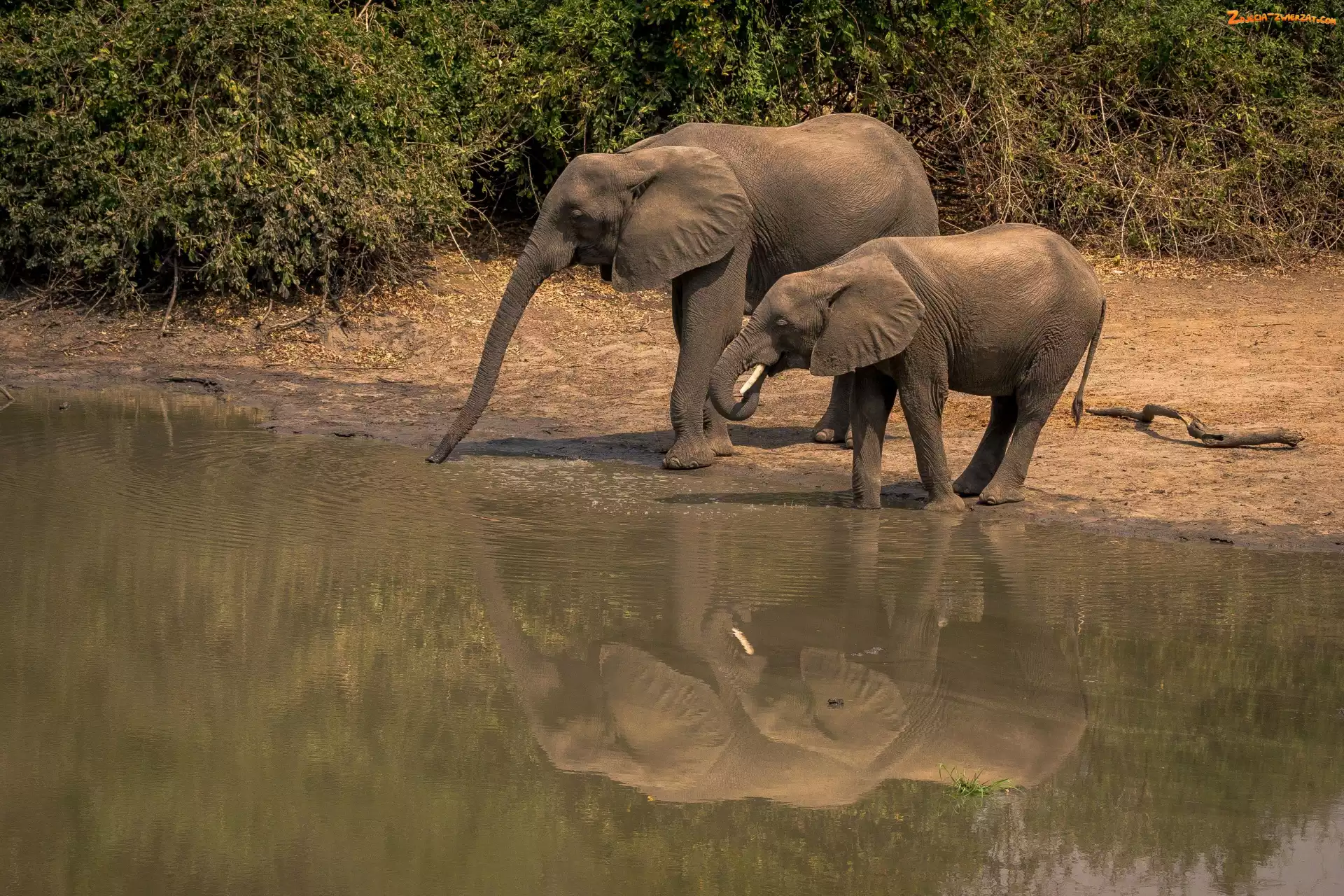 Zdjęcie: Słonie, Krzewy, Dwa, Woda