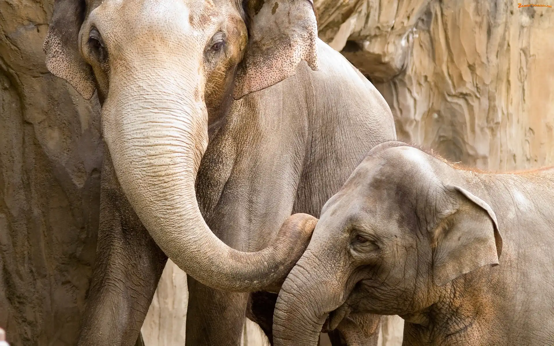 Zdjęcie: Słonie, Skały, Dwa, Trąba