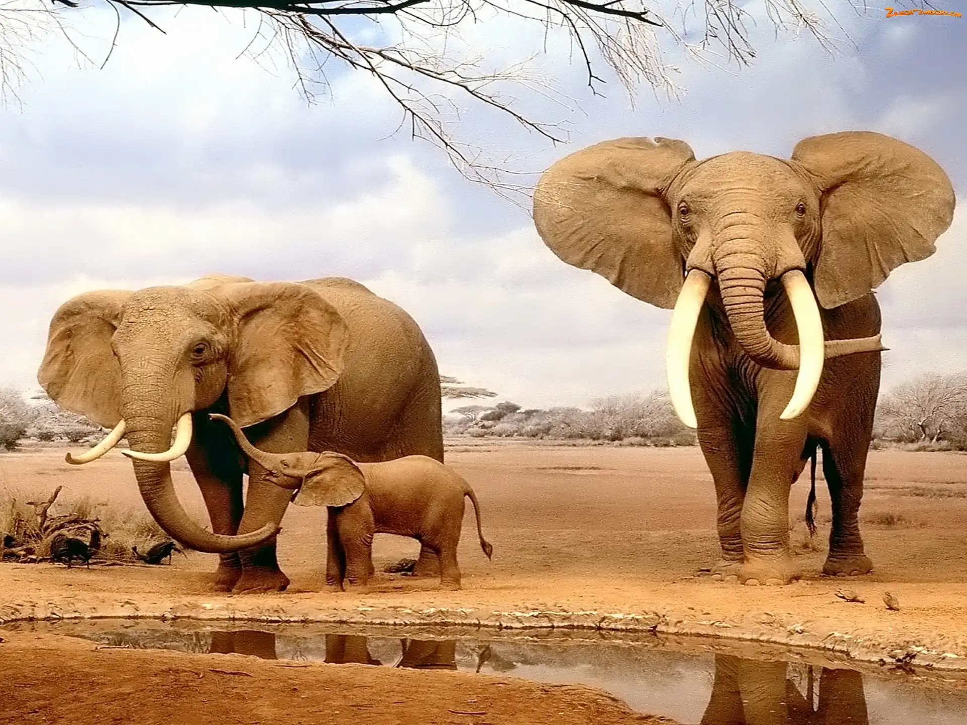 Słonie, Wodopój, Trzy, Rodzina