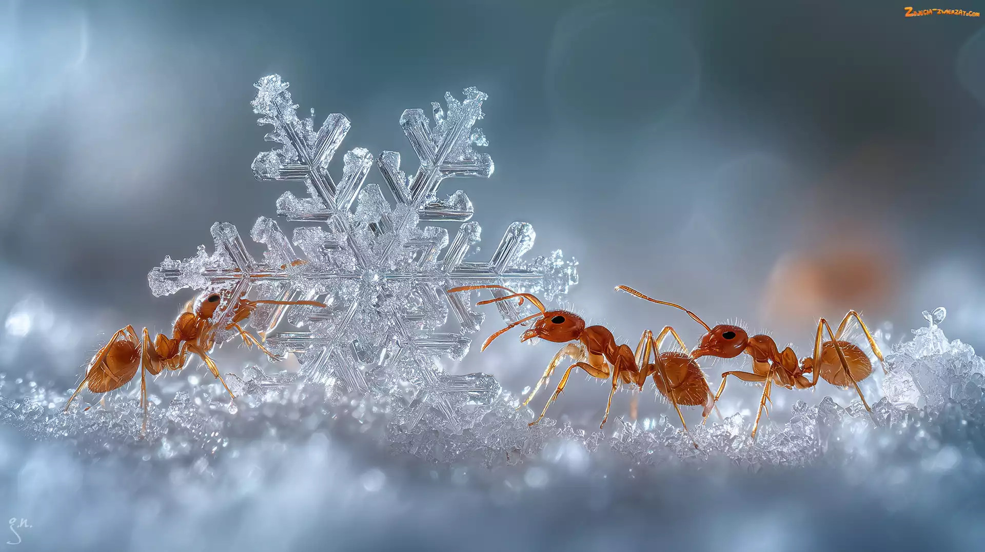 Zdjęcie: Grafika, Śnieg, AI, Śnieżynka, Mrówki