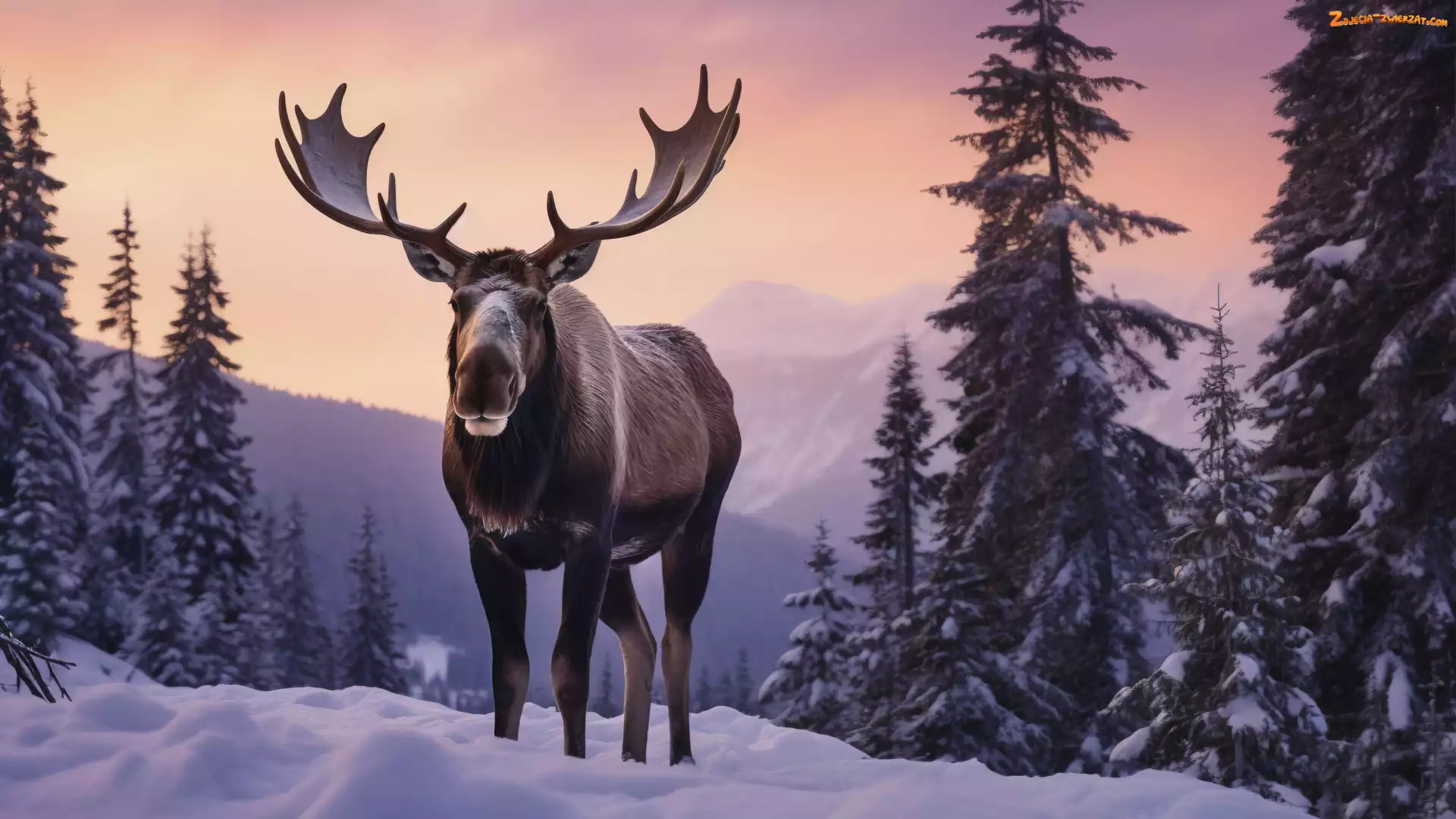 Zdjęcie: Drzewa, Śnieg, Góry, Łoś, Zima
