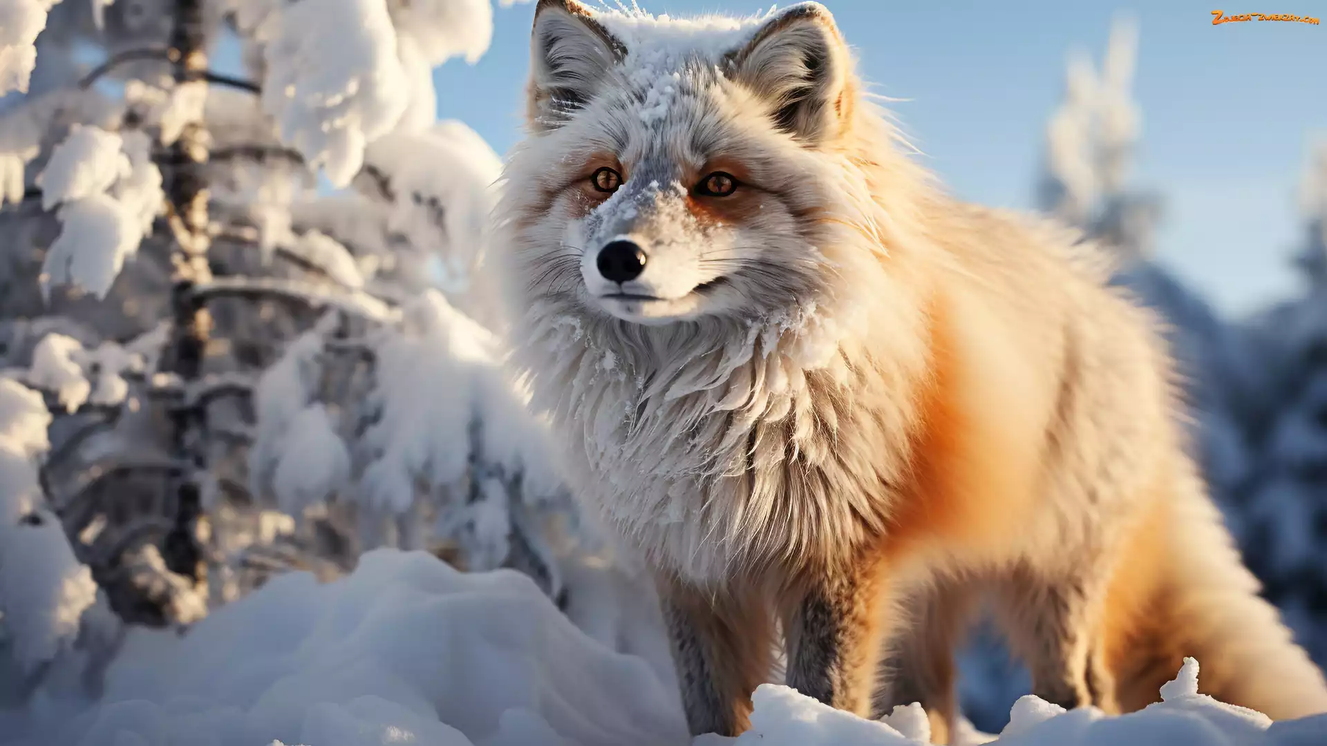 Lis, Śnieg, Grafika, Zima, Drzewo