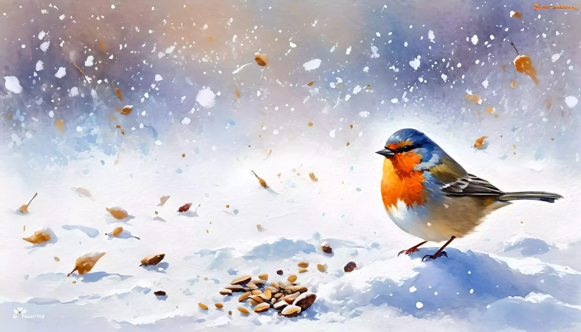 Zdjęcie: Ziarna, Śnieg, Grafika, Kolorowy, Ptak