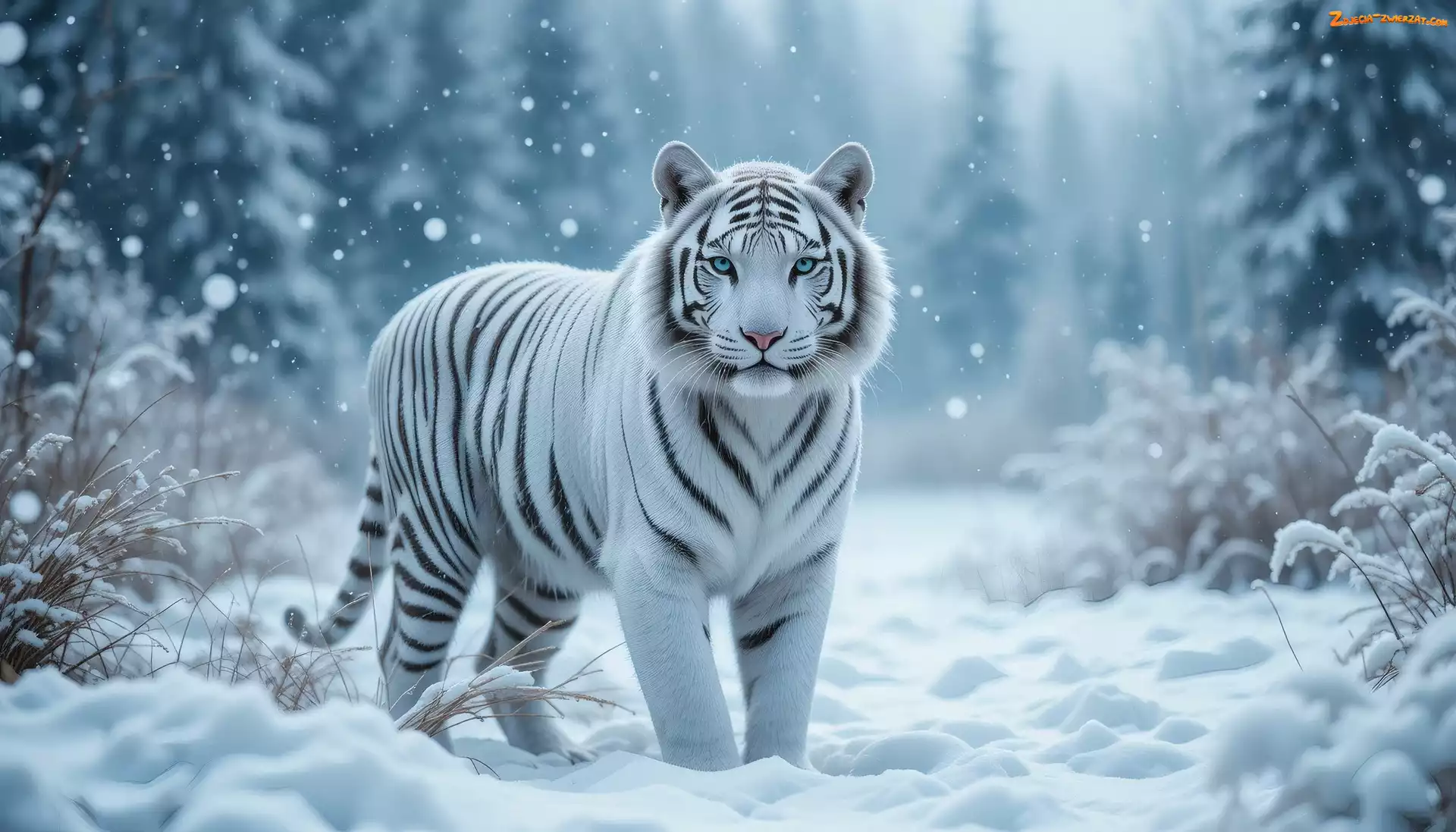Zdjęcie: Las, Śnieg, Grafika, Biały, Tygrys